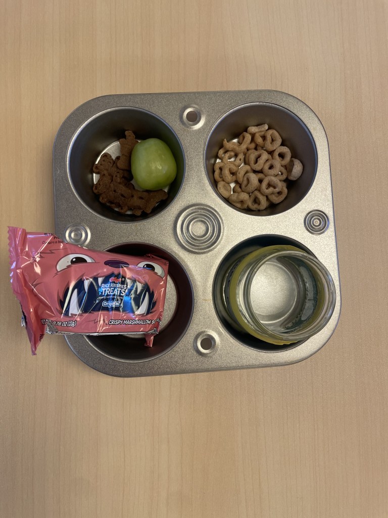 Green grapes, Teddy Grahams, and ghost cheese from Ella and Everett. We also had Halloween rice crispy treats from Grandma Bonnie and Cheerios from Zander. Thank you, friends!