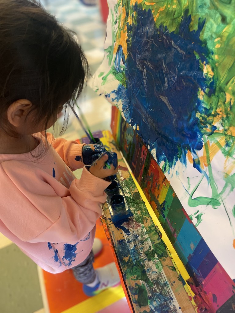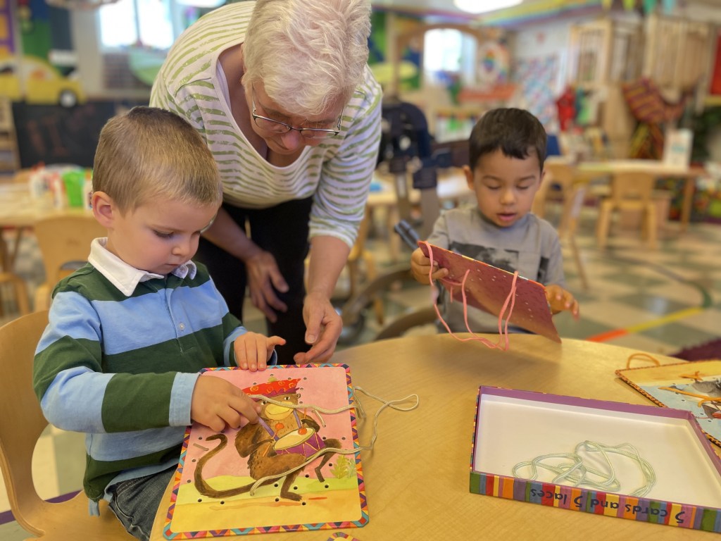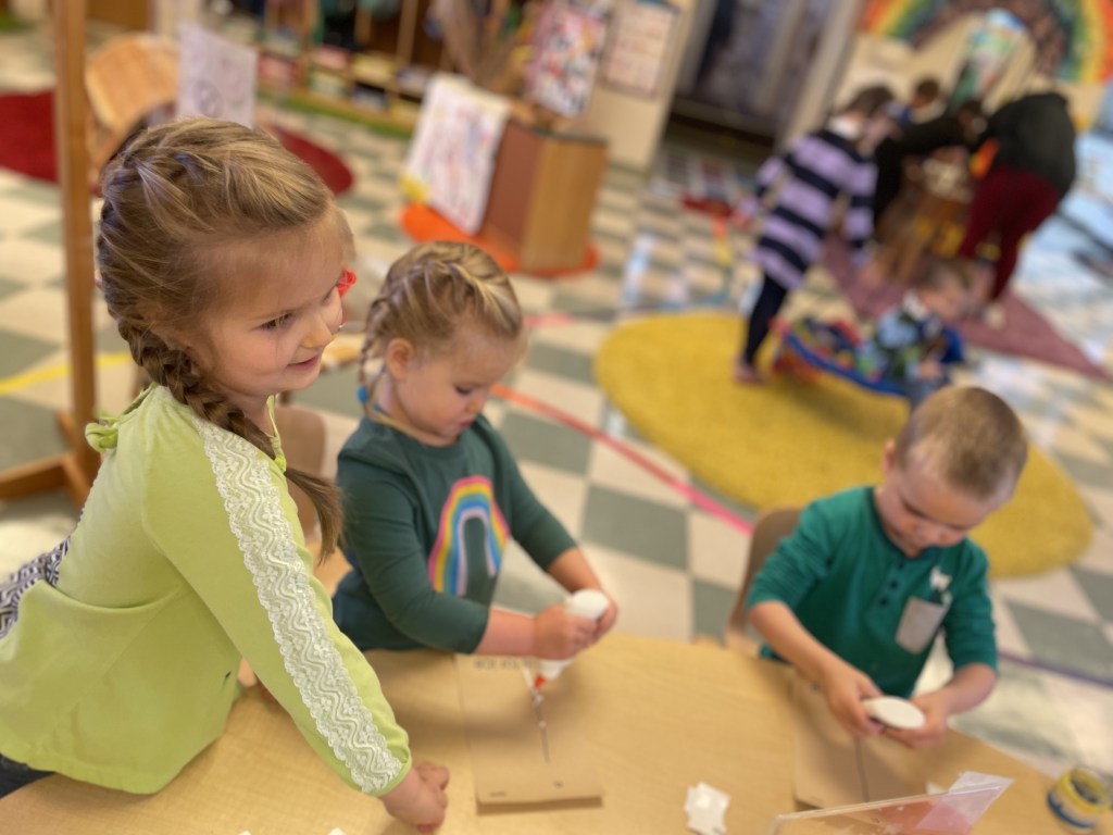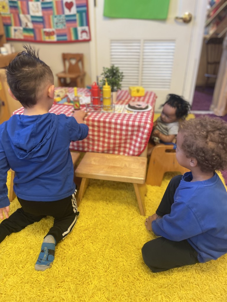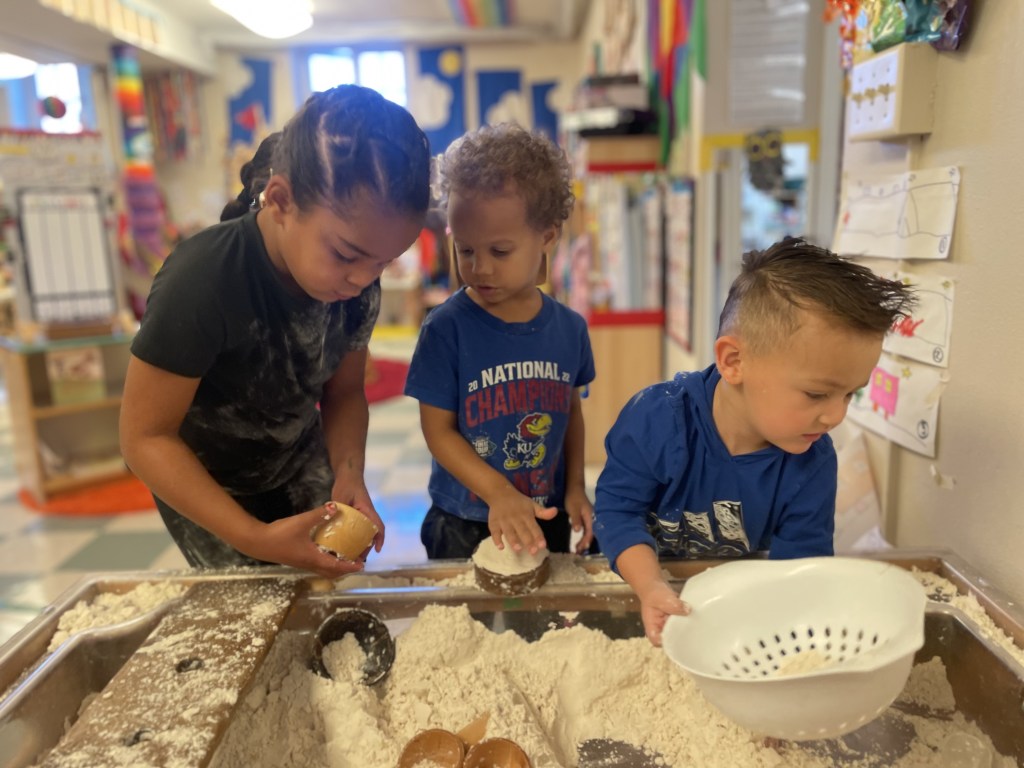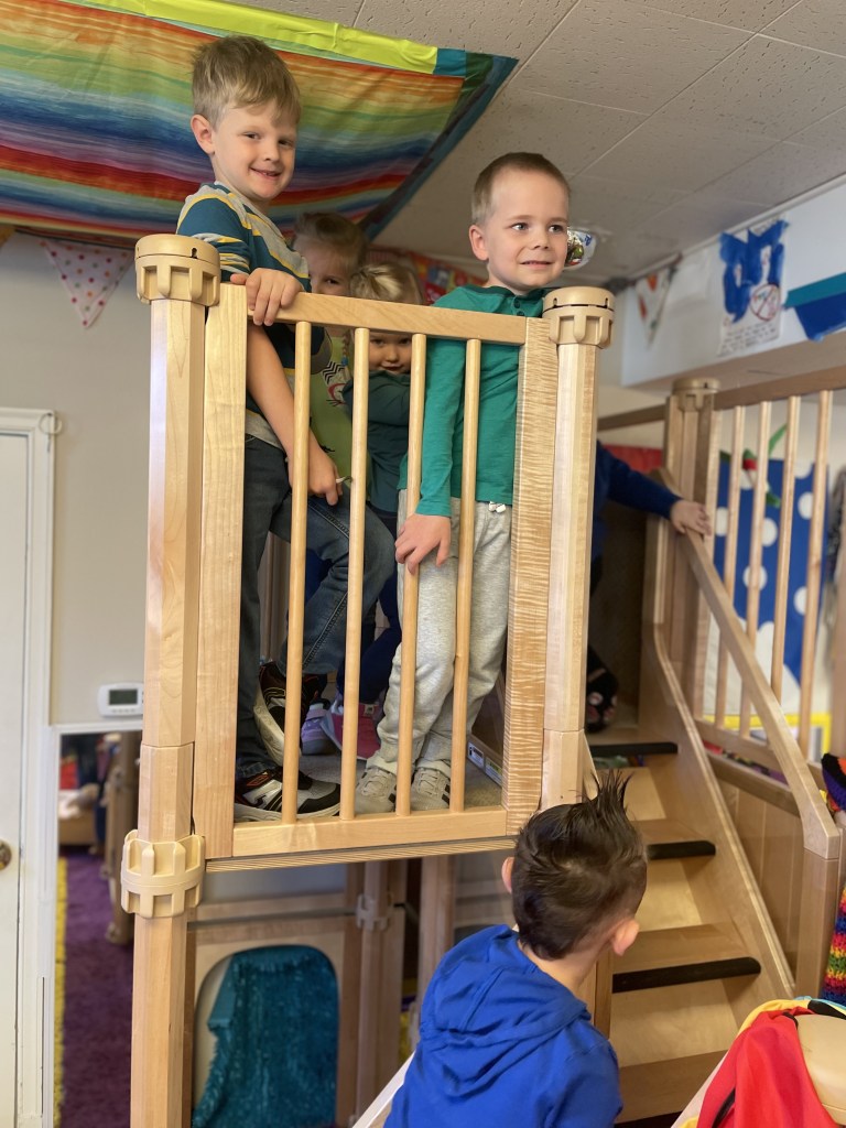 Our Tuesday “Yellow Day” Class was all together today…one little sister turned three so she stayed on her own for the first time. Ms Kristin counted 13 pillows so everyone could have one at Circle Time. We honored I Week with instruments, ice, igloos and inches. The Dirt Pumpkin has changed since we were together last as well.