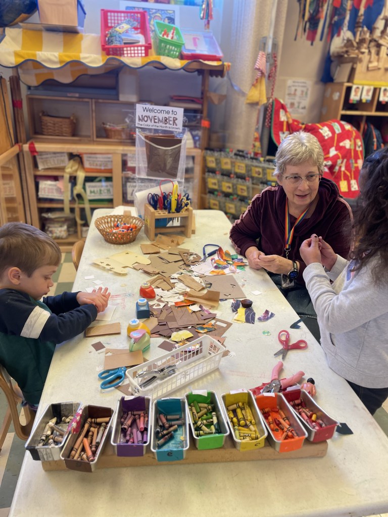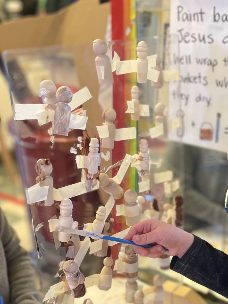 We needed it brown for making baby Jesus’ skin color and we’re also honoring these last few days of November. When these wooden dolls are dry we’ll wrap them in blankets just like the baby Jesus’ in our books.
