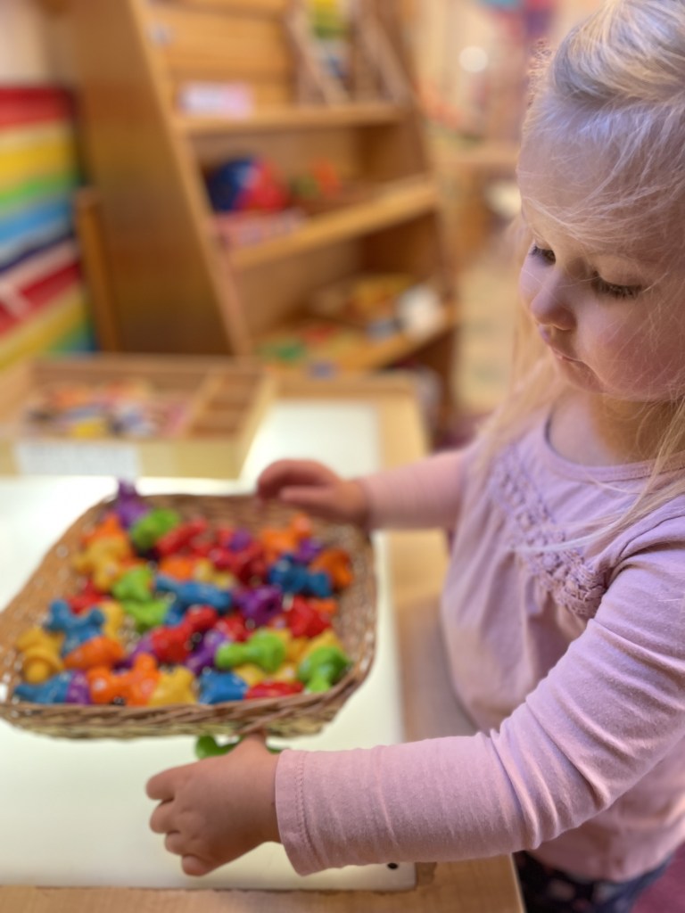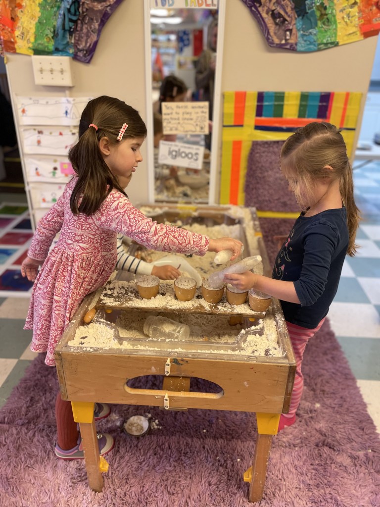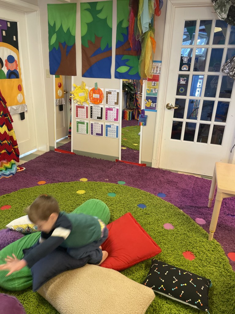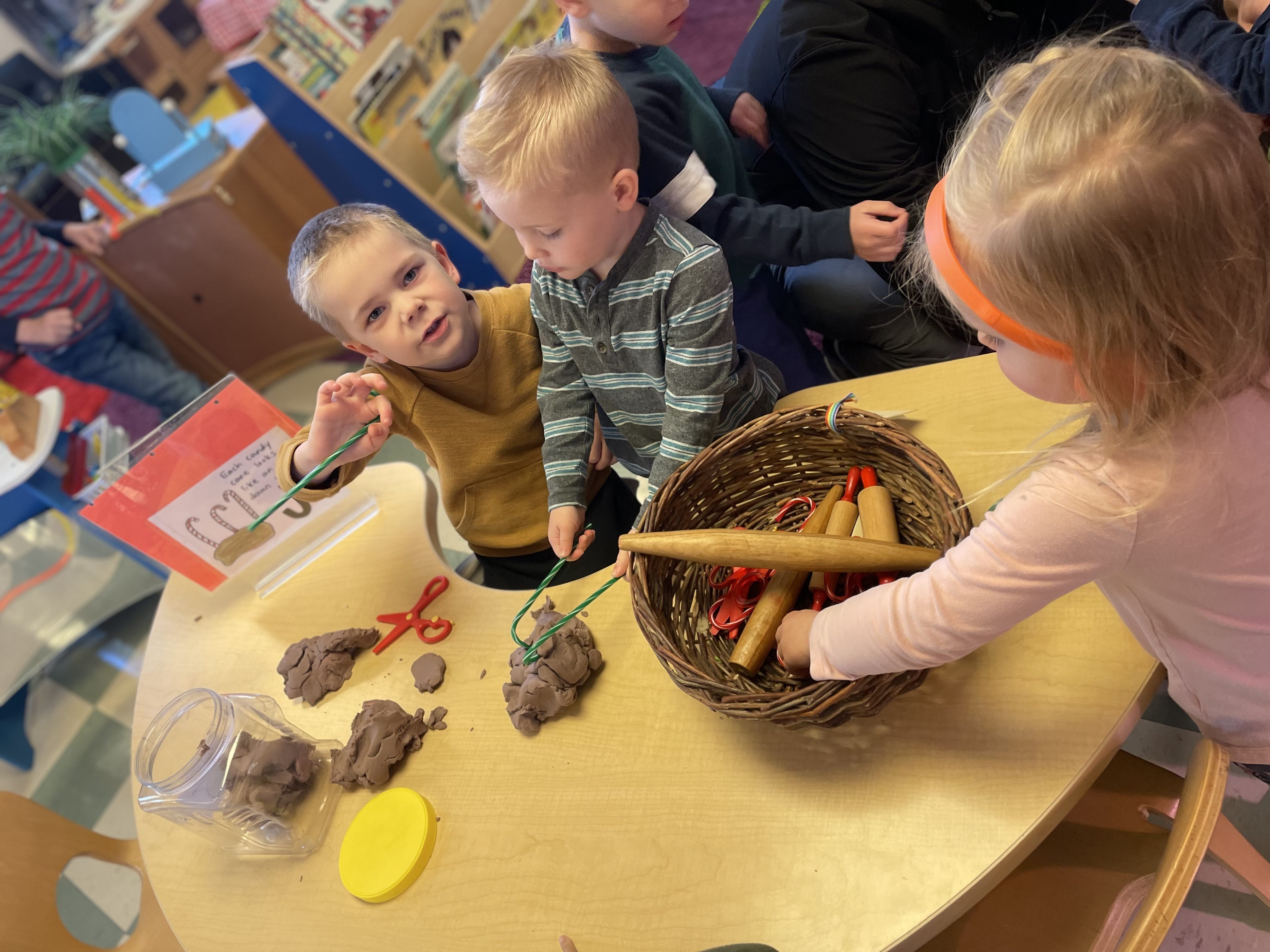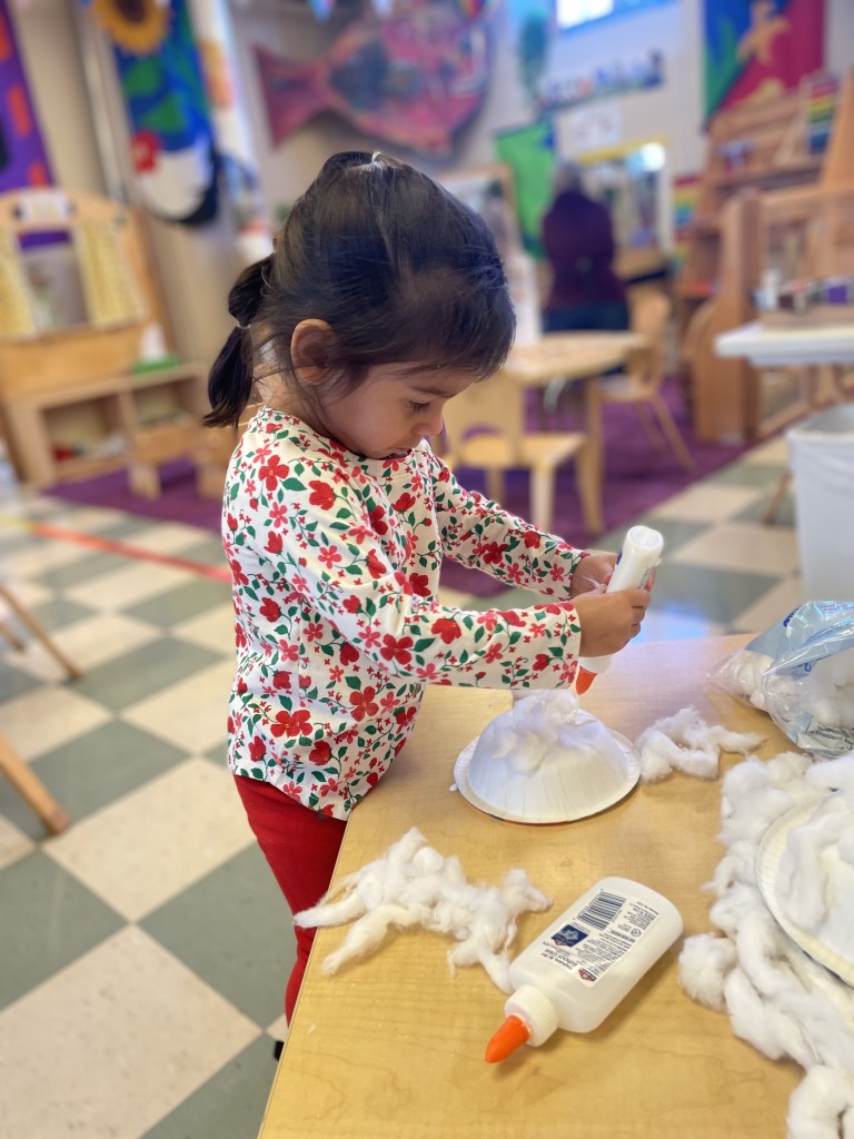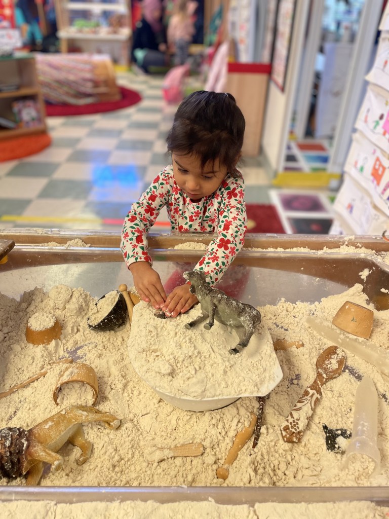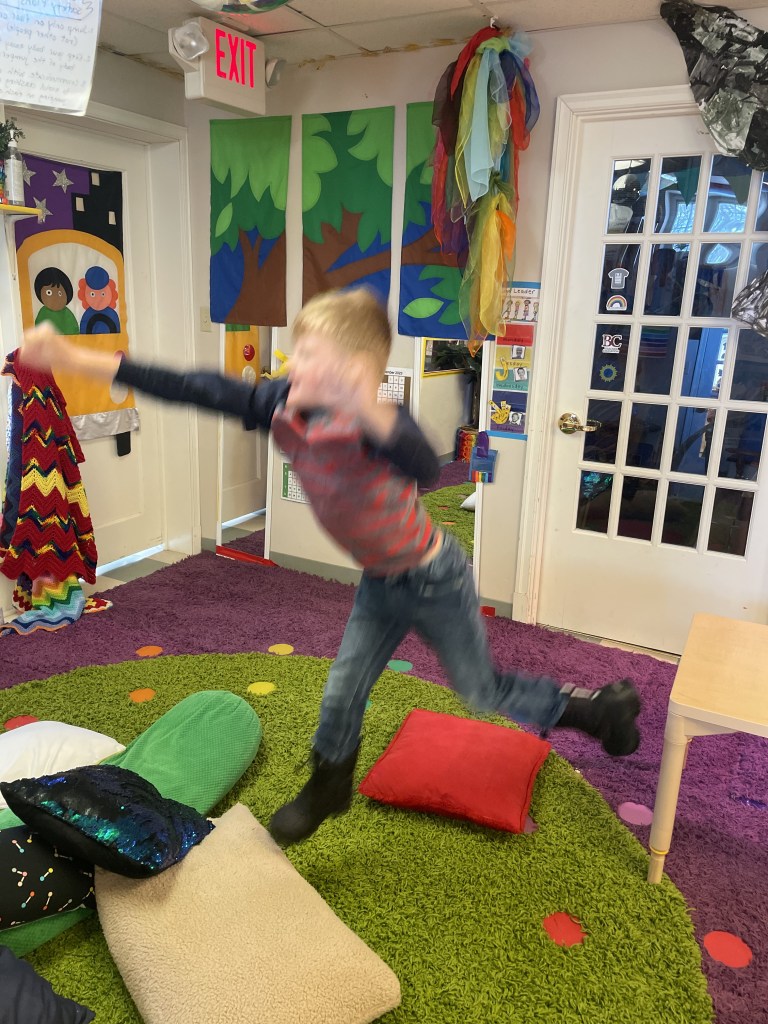Our Tuesday “Yellow Day” Class started off with lots of jumping in Jumping Land, finding jingle bells and baby Jesus’ in new books, looking for jumping animals at the Puzzle Corner, getting jingle bells on our shoes or backpacks and playing with animals in the pretend snow at our Tub Table.