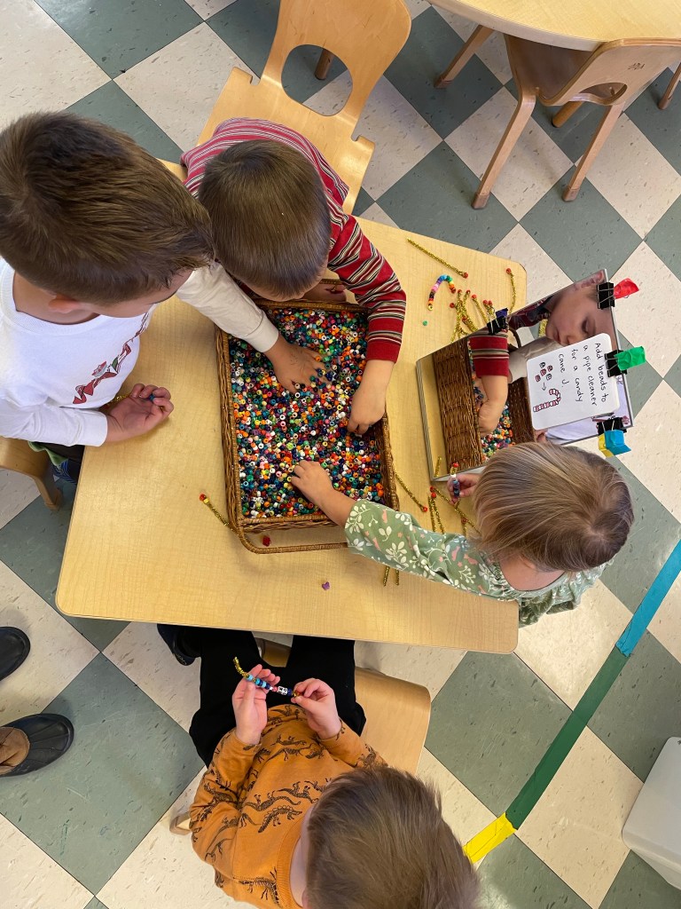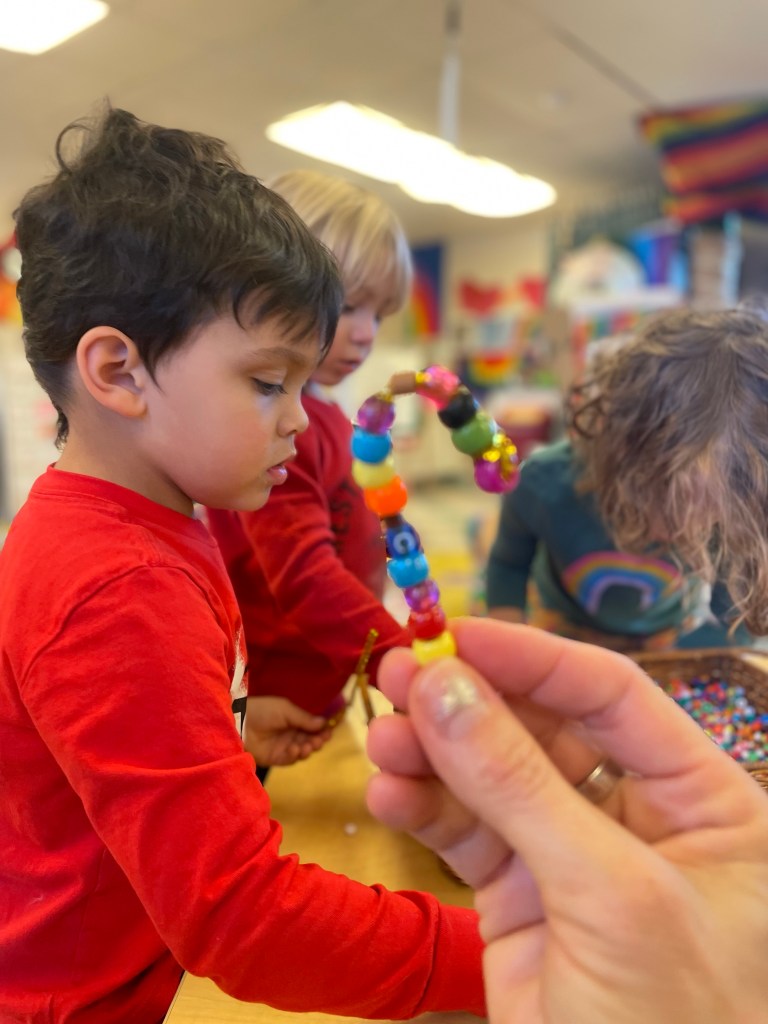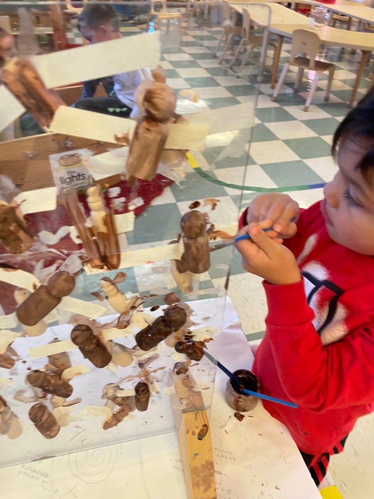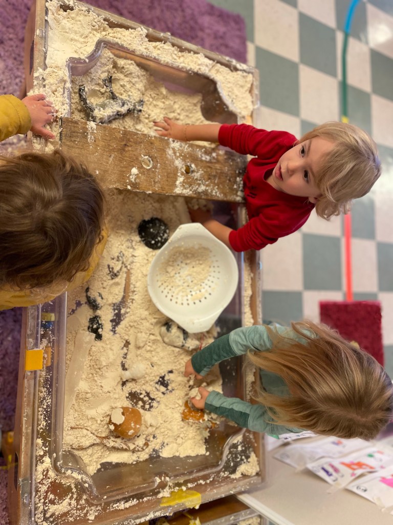 We were using the brown play dough for hot chocolate again and one friend noticed we didn’t have any white marshmallows. Ms Kristin was very happy to find a container of white play dough that we could use to make pretend marshmallows.