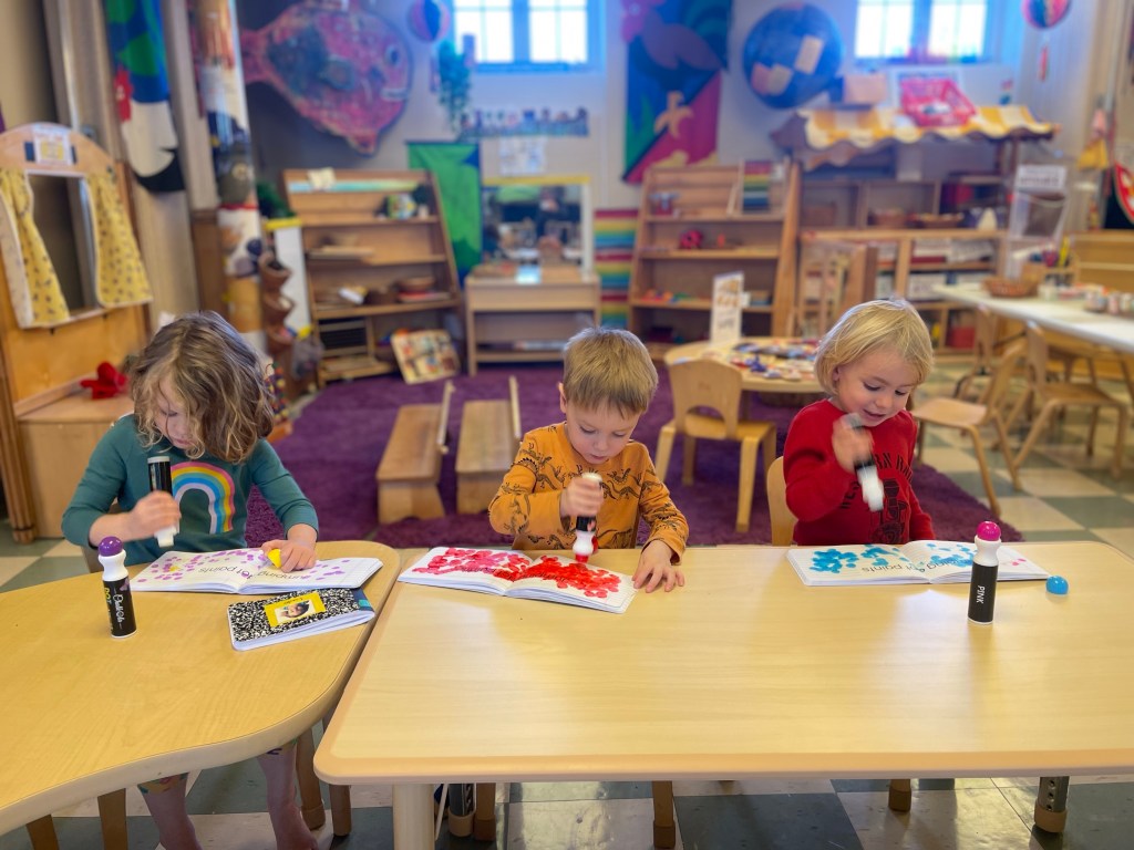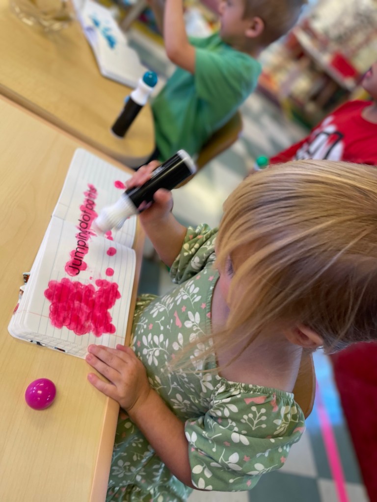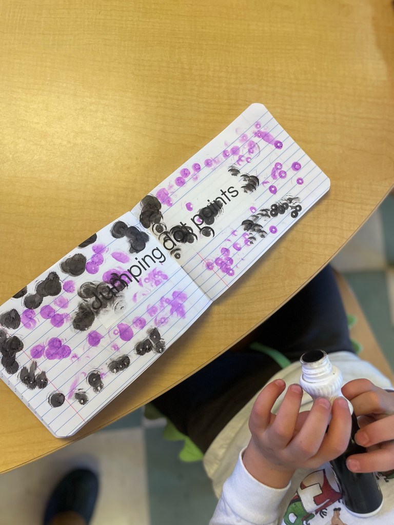 We called them jumping dot paints. This class knew exactly what to do: there was no sliding or rubbing with the paints…only jumping.