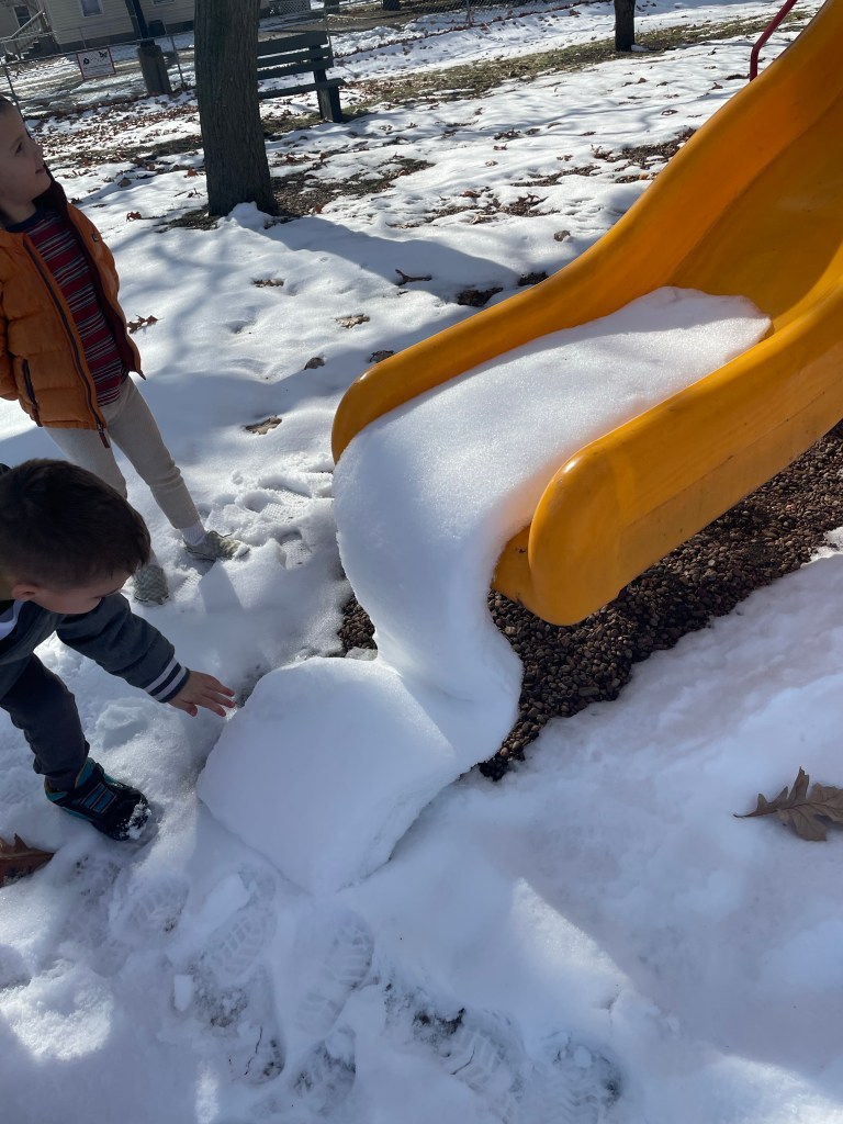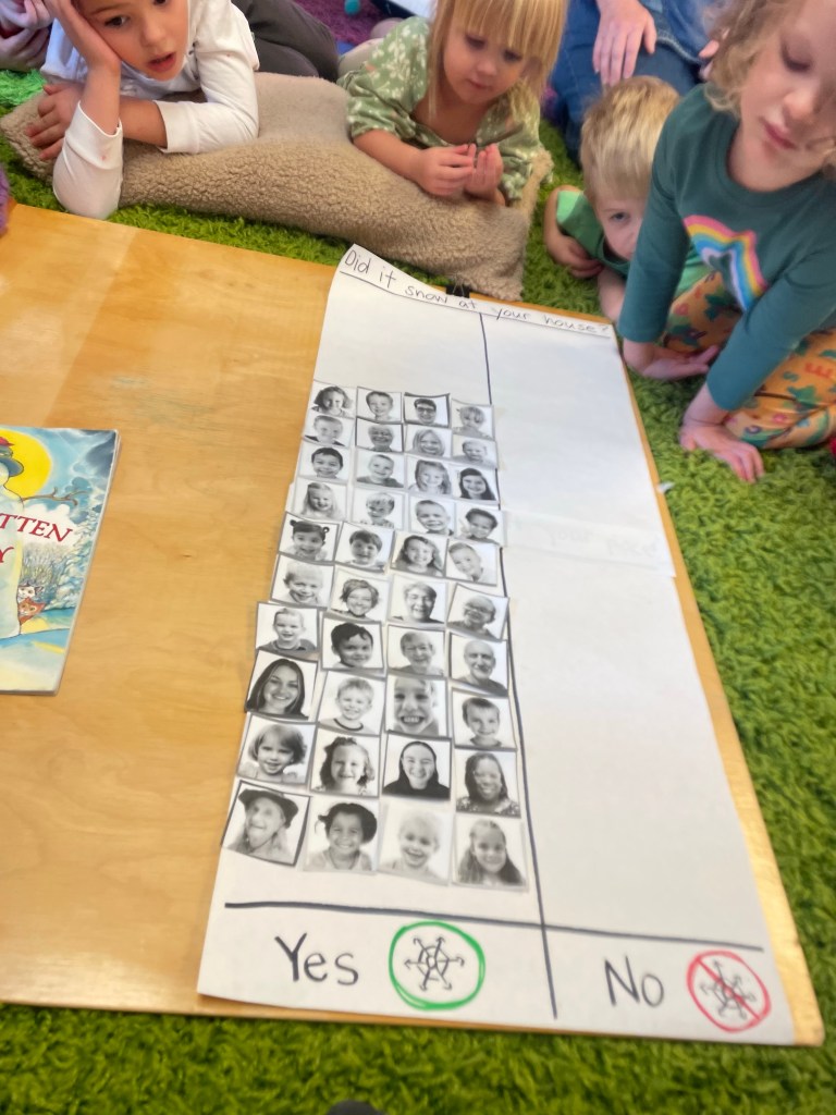 We read The Missing Mitten Mystery during our Snow Talk and were delighted to see where she found her mitten as the snow melted. That was the perfect thing to do before we went outside to see where the snow is melting on our playground as well.
