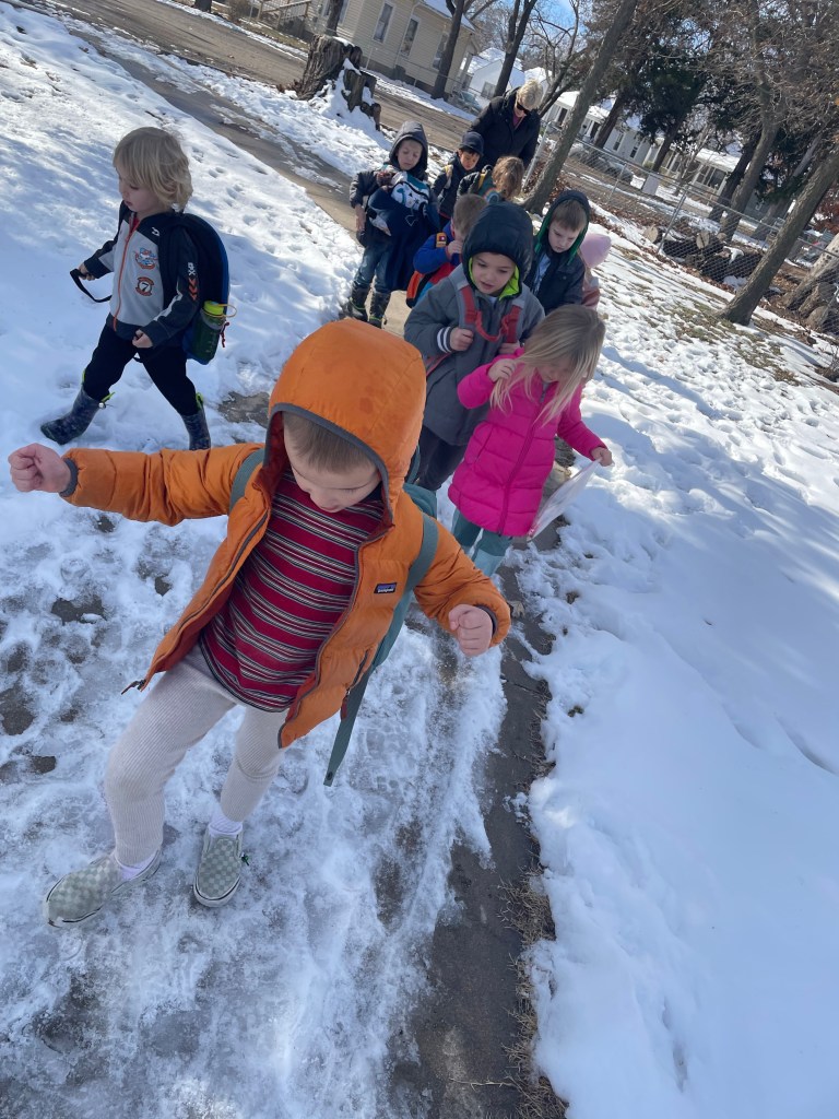 Our schedule board gets more detailed as the school year goes on and today included a couple of new items. We had more Snow Talk, a separate journal time and a winter walk. Read on to learn more about today…