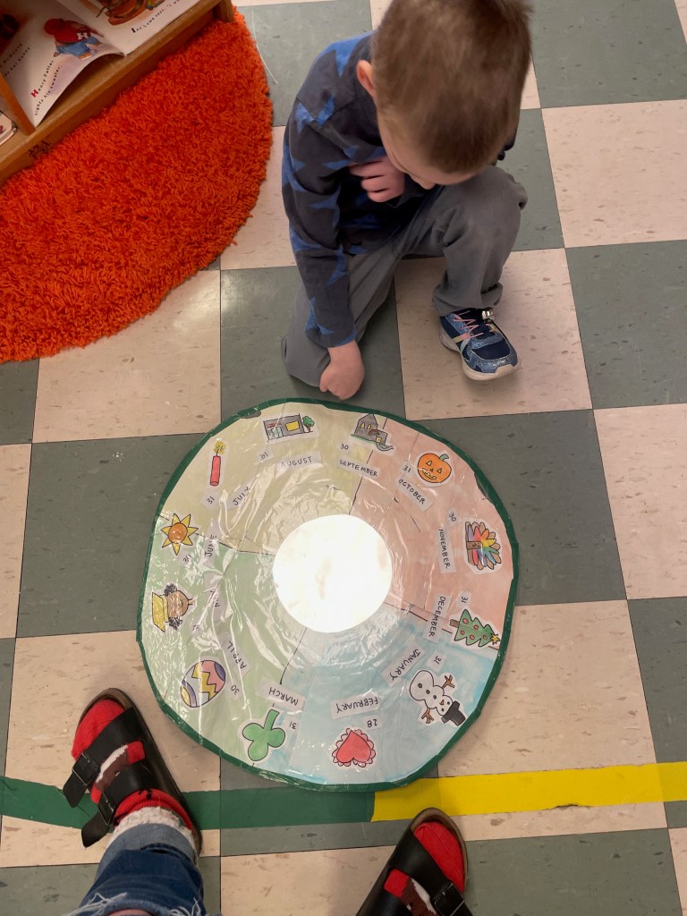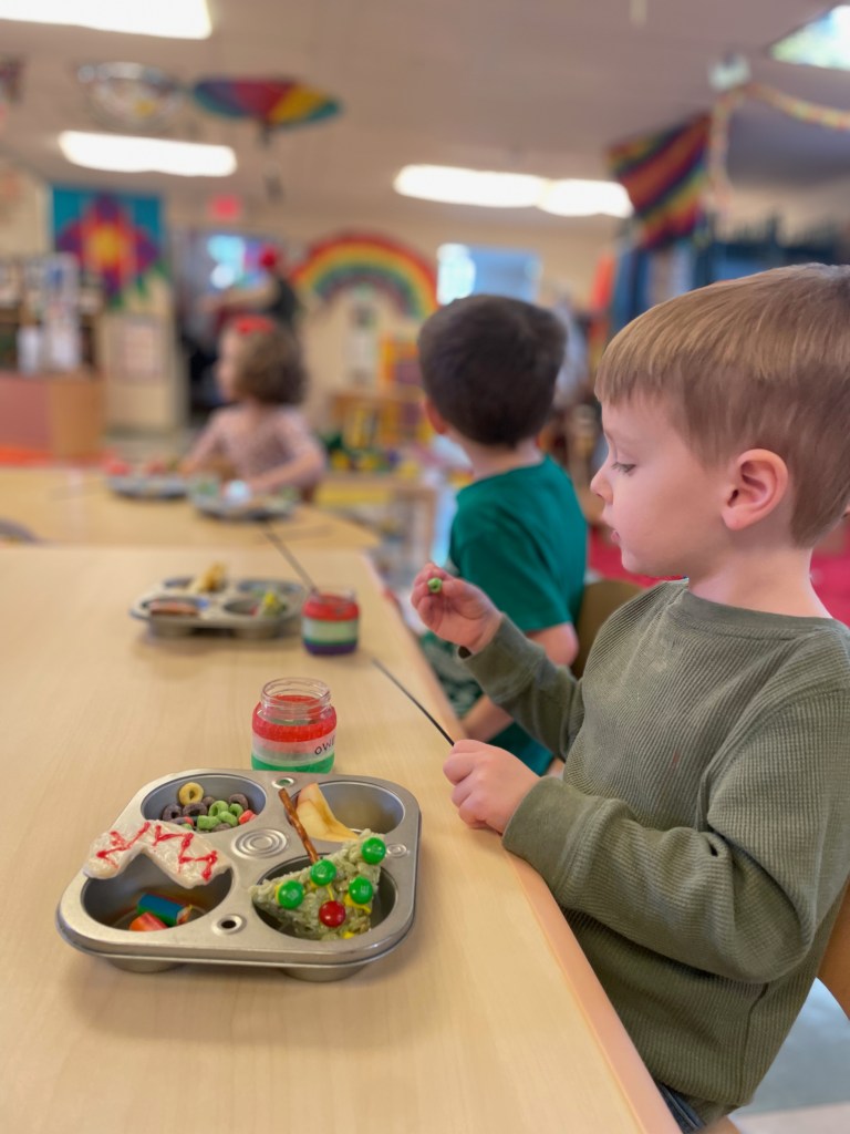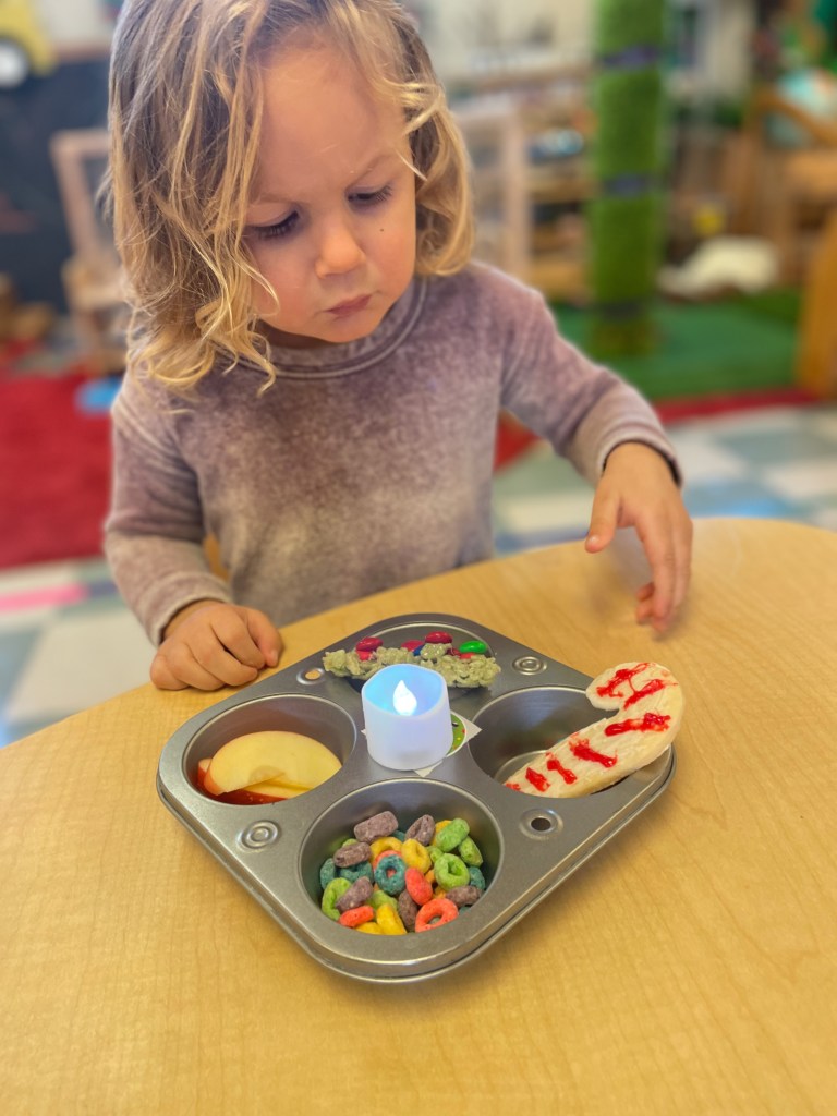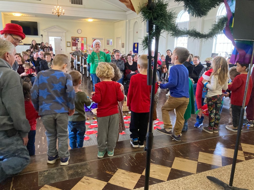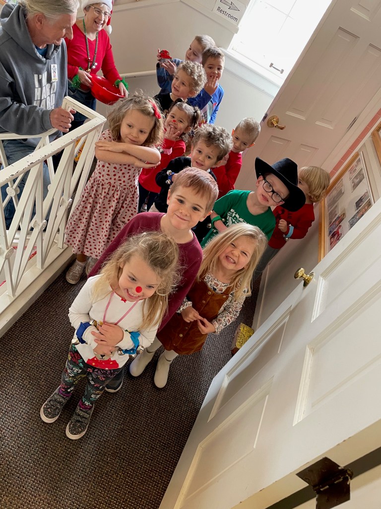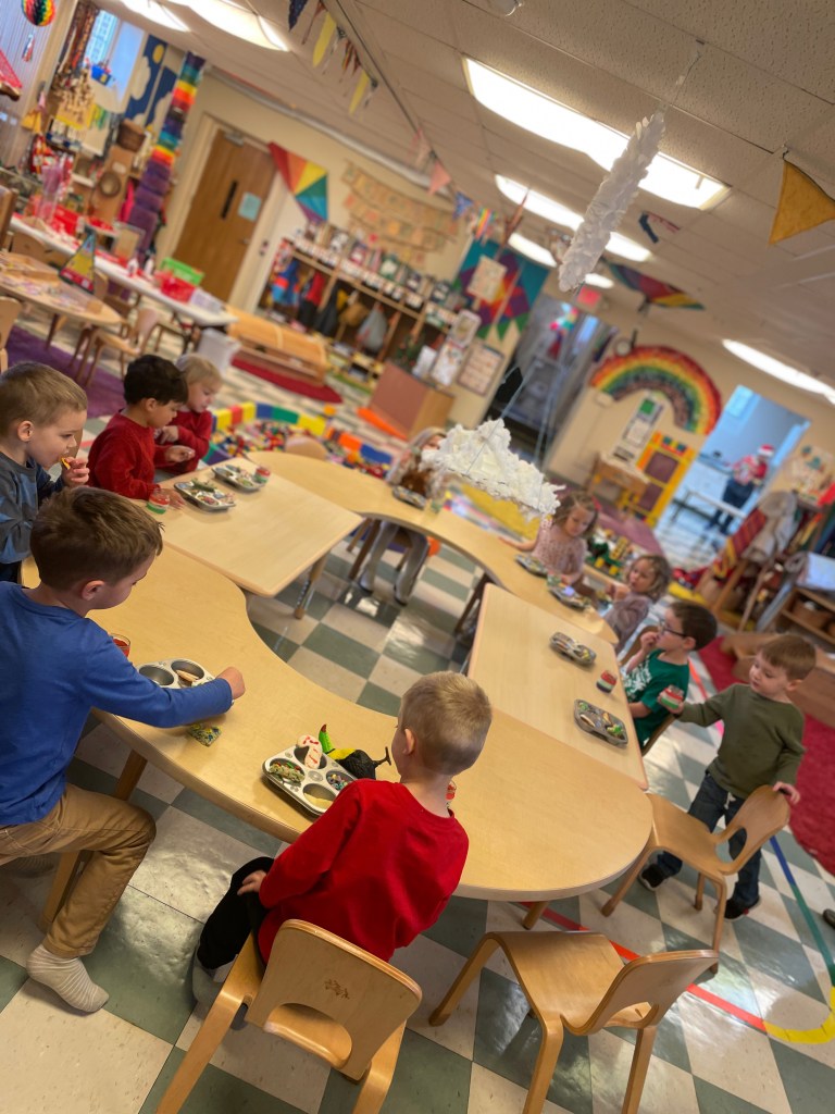Our Wednesday “Green Day” Class hosted the second of two Christmas programs. We had an hour and a half to get everything else done before joining our special people in the sanctuary. We changed our schedule today and ate snack early today. This means we had Circle Time early today. This means we did our projects and outside play earlier today too. In that short amount of time we played hard! We were outside when our special people started to arrive…how fun to see them while we played, including some former preschoolers!