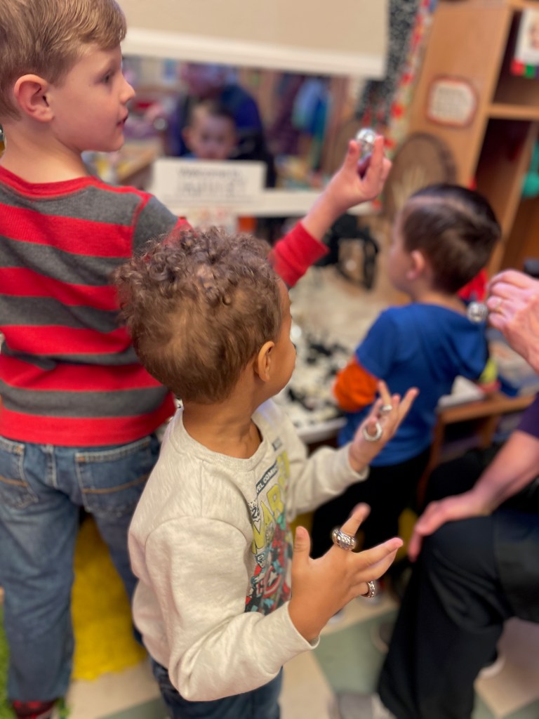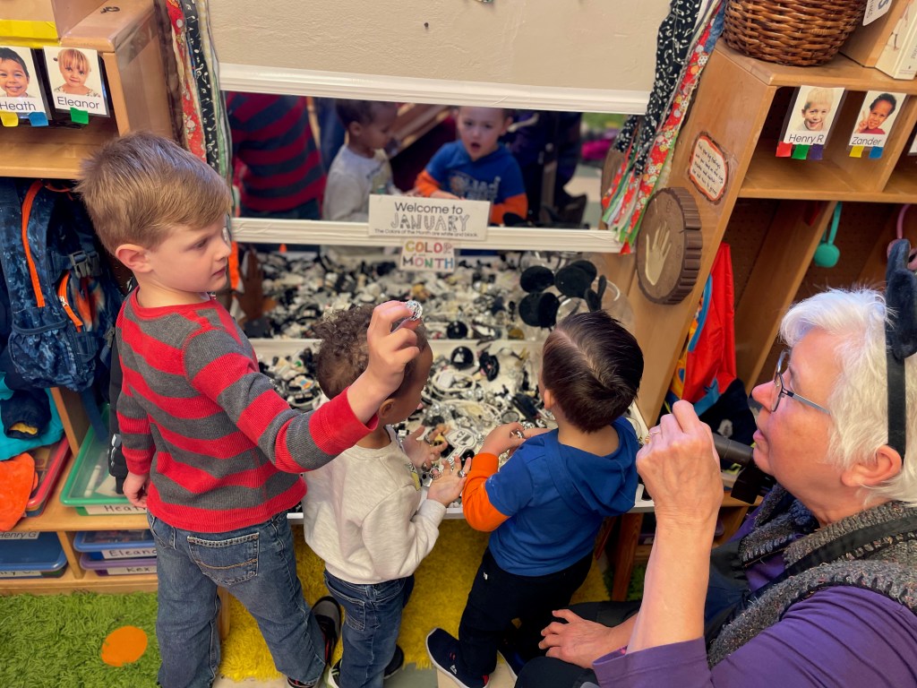 Our Thursday “Blue Day” Class had the honor of welcoming in 2024 with M Week. We had a wonderful first day back with a Golden Letter friend too. The play was constructive and there were rounds of applause for the moments of conflict resolution that requires no teacher input. We started looking at pictures of Dr. King knowing his birthday will be celebrated later this month. In the same way he looked at himself and the world, we are looking at ourselves and the world.