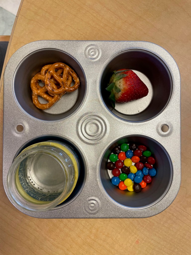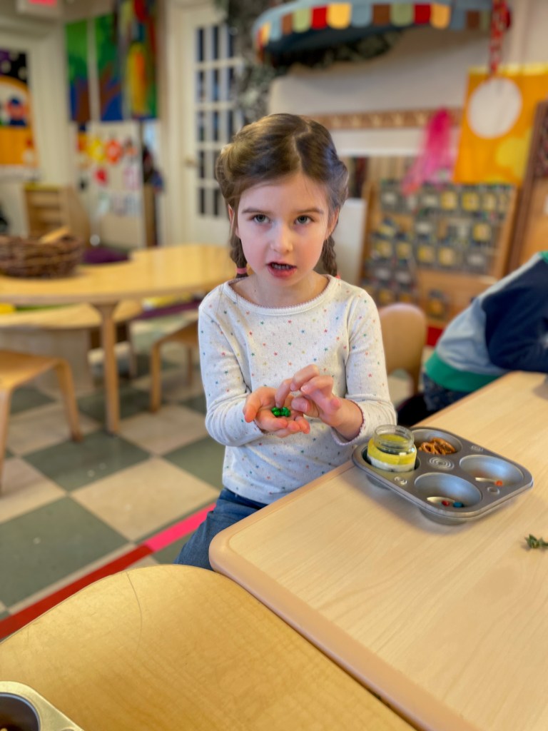 Small, tiny or “very small.” Max brought mini M&Ms and mini pretzels along with strawberries for snack today. We had fun sorting the mini M&Ms by color and visiting the snack store often.