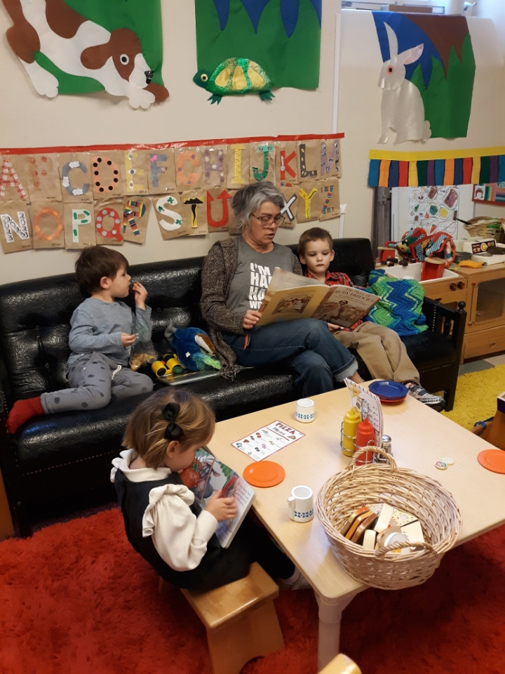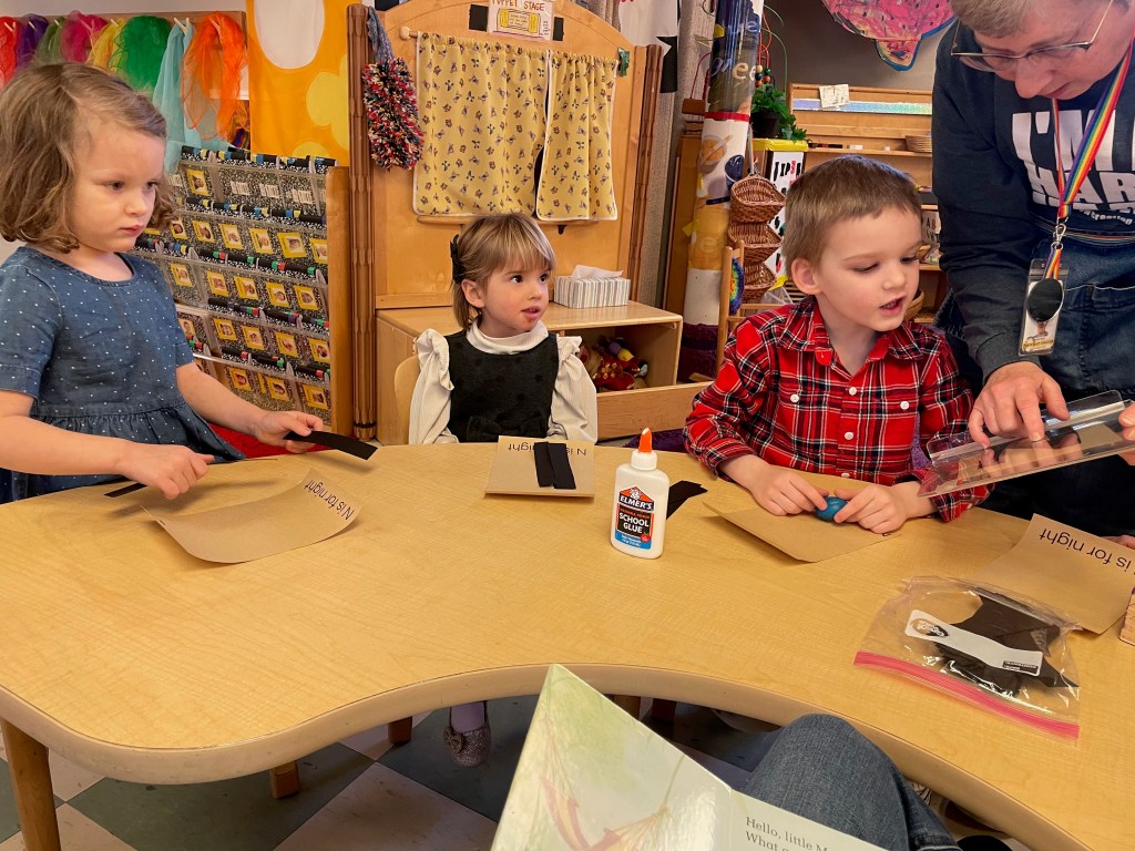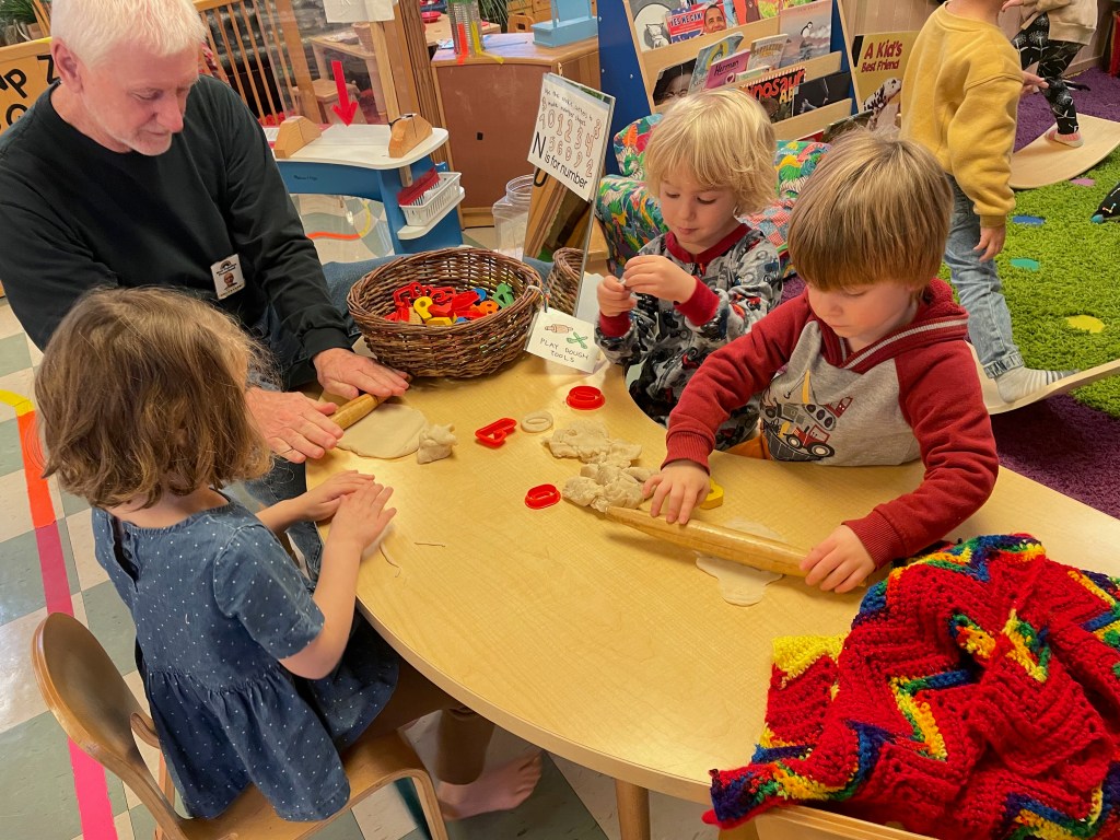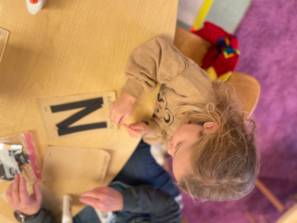 We had one friend home sick today and some friends home due to the slippery weather conditions. The rest of us stayed warm and cozy inside finishing up work from M week as well as starting on night time things in honor of the letter N. There were number puzzles and the discovery of a missing puzzle piece as well. There were number cookie cutters at the play dough table and lots of negotiating when more friends came to the play dough table. We also had a lot of spontaneous reading today…how handy to have so many adult readers.