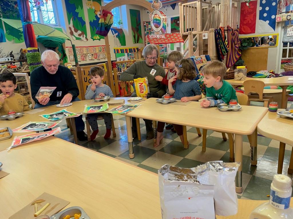 Thanks to Charlie, we had dino chicken nuggets, apples cut into french fry shapes (so we could turn them into the capital letter N) and Nilla wafers! And thank you, Charlie and Drew for helping Grandpa Kelven get snack ready.