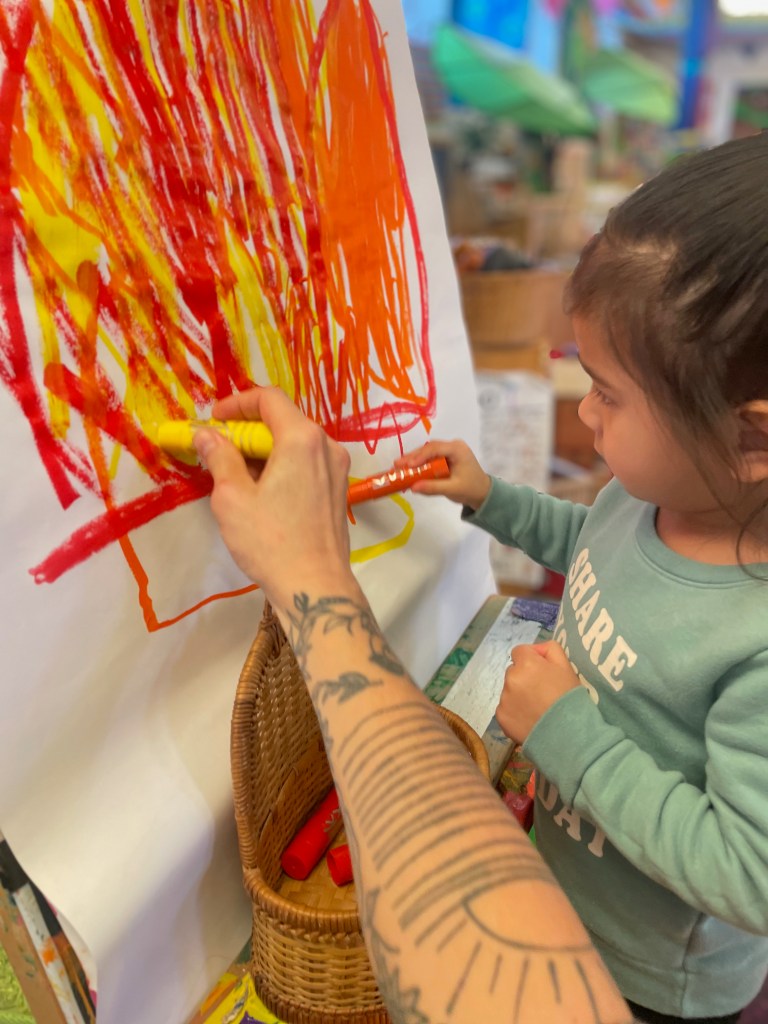 Two! Sometimes we have up to eight teachers, but Ms Kristin and Ms Brenda know how to do their job even when it’s the two of them. Grandma Bonnie stayed home with a repair guy because her heater stopped working so we wished her well! It was fun to hear 6 other teacher friends so warmly named: Grandma Bonnie, Pastor Shana, Ms Ashton, Grandpa Kelven, Ms Eliza and Ms Emily. What a rich community!
