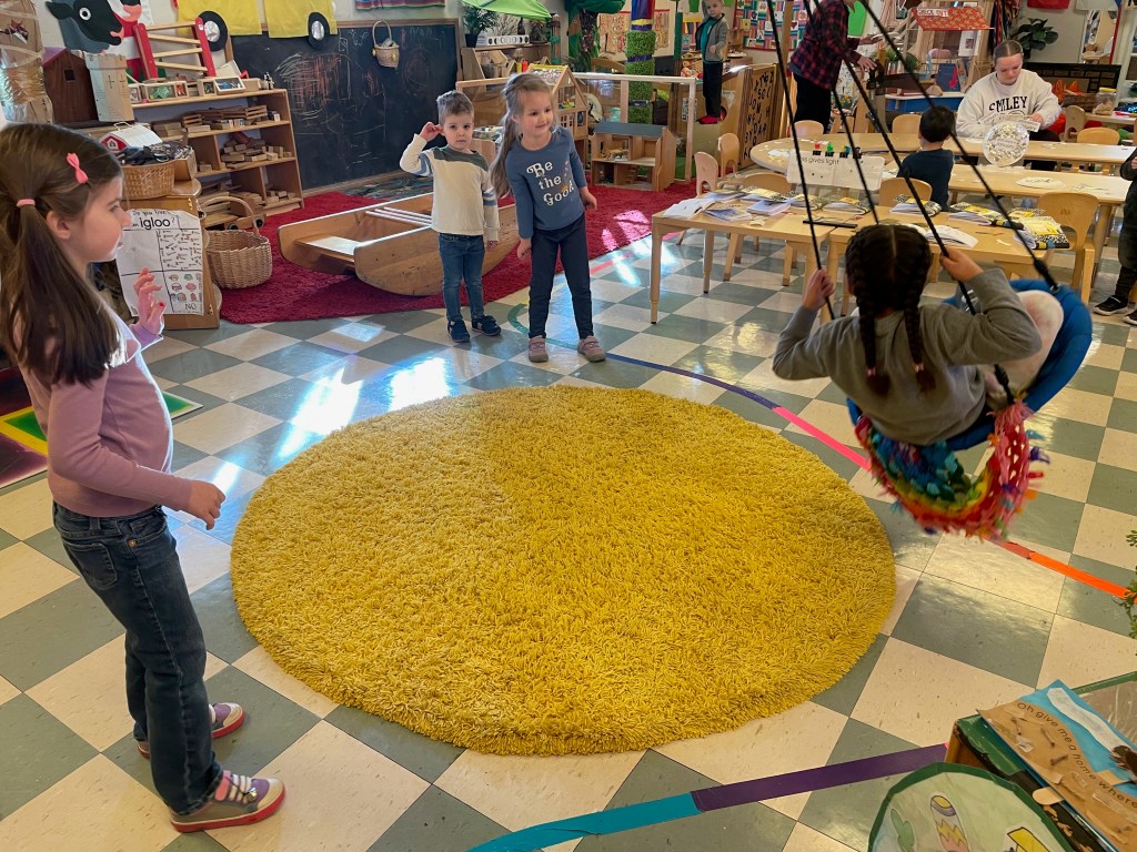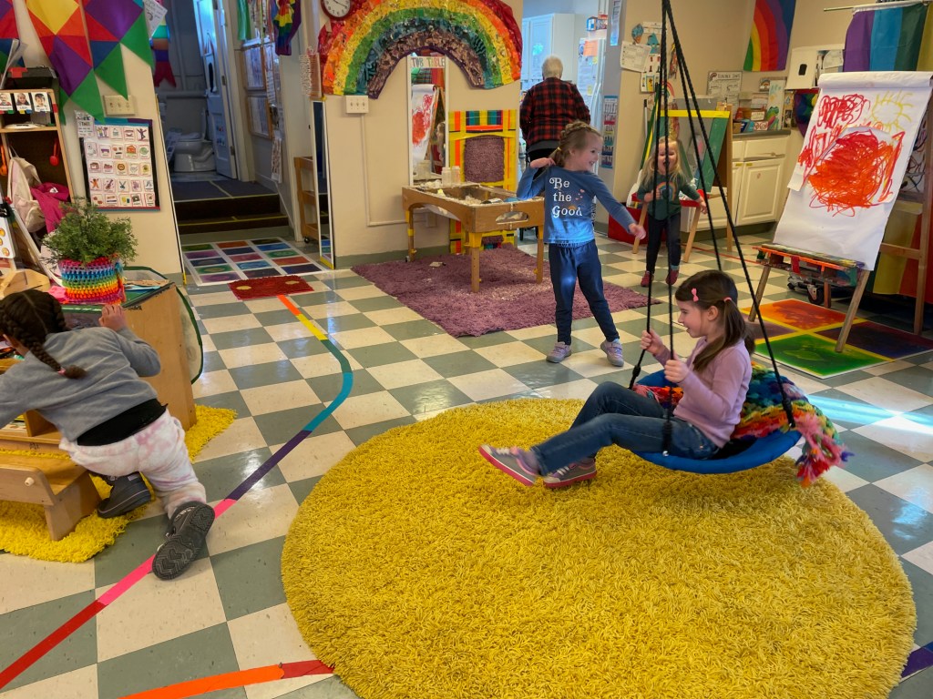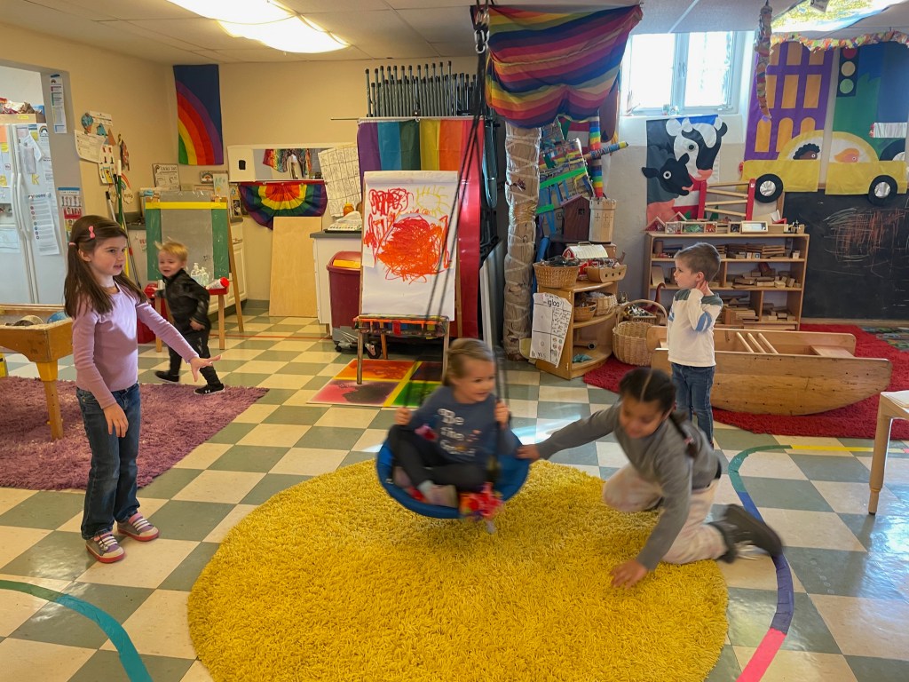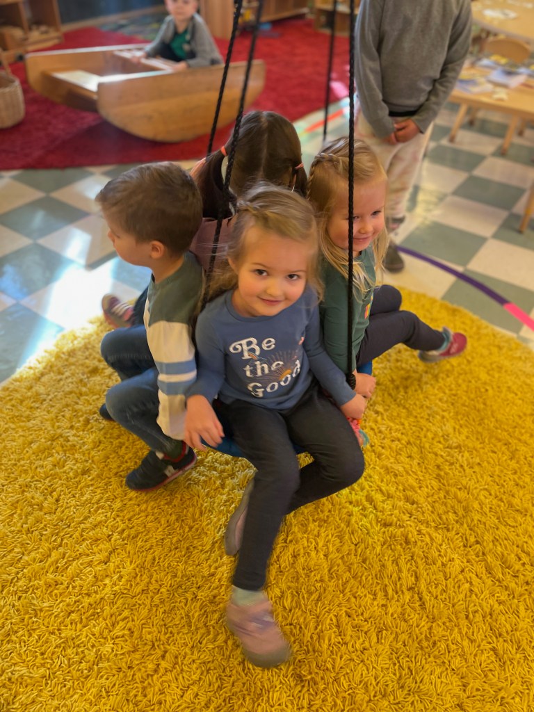 We had some new swing play today: letting 4 on at a time AND allowing pushing each other.