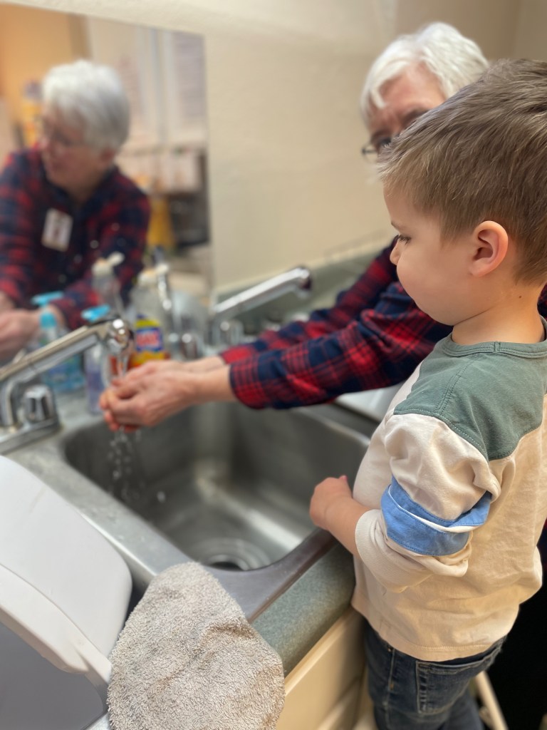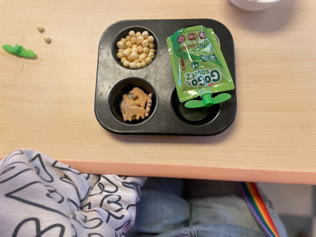 We had cinnamon applesauce from Ella and Everett, animal crackers from Zander and Kix cereal. Some friends really noticed the flavor of the applesauce (that they either squirted out into their tray or slurped right from the pouch). We also visited about our favorite animals and if we had seen them in real life or not.