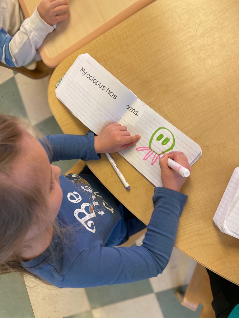 After reading and visiting about limb differences everyone got to make as many limbs on the octopus body as they wanted. While we may typically see an octopus with eight, many of the octopi we made today had more or less.