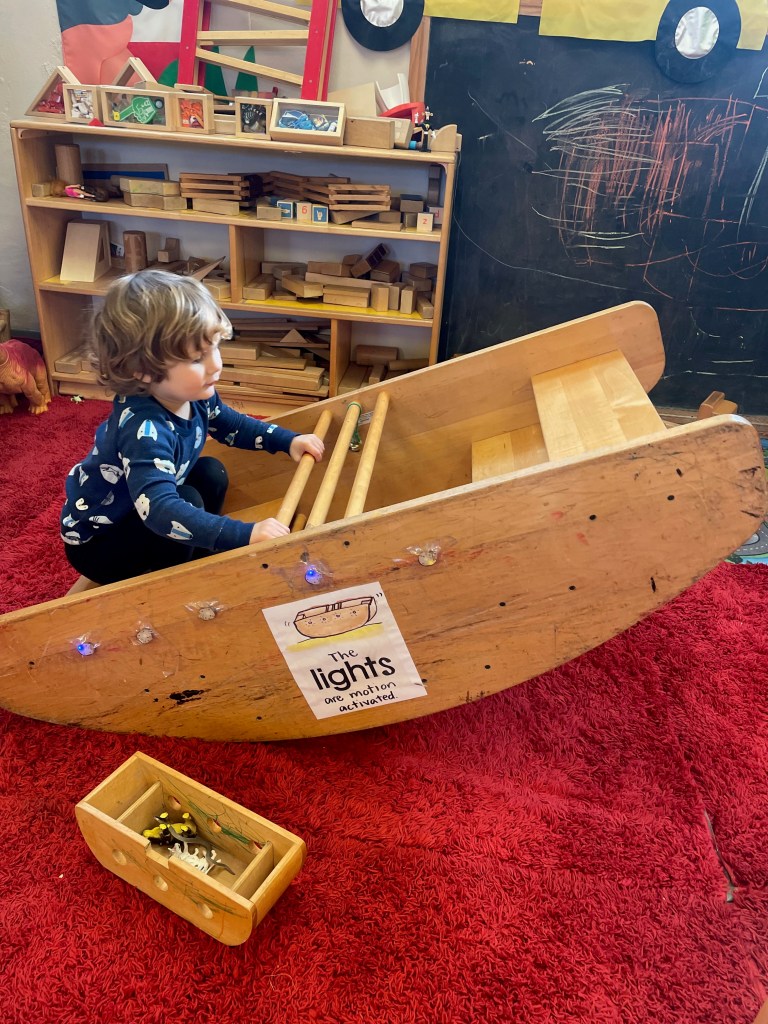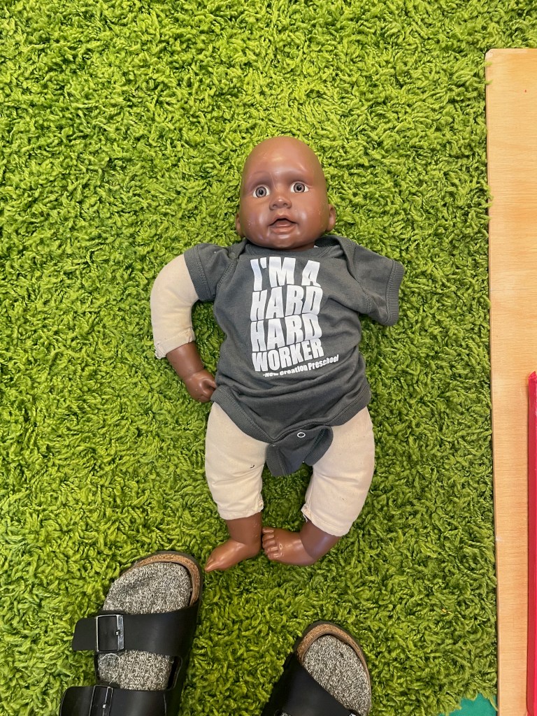 Usually we put them on the bench, but today we brought them all the way to the pavilion. As we walked past the bench, we began saying things like, “Not today, bench! See you next time! Thanks anyway!” But “Not today, bench!” stuck and was repeated often. So, in case you hear this phrase, now you know what it comes from.