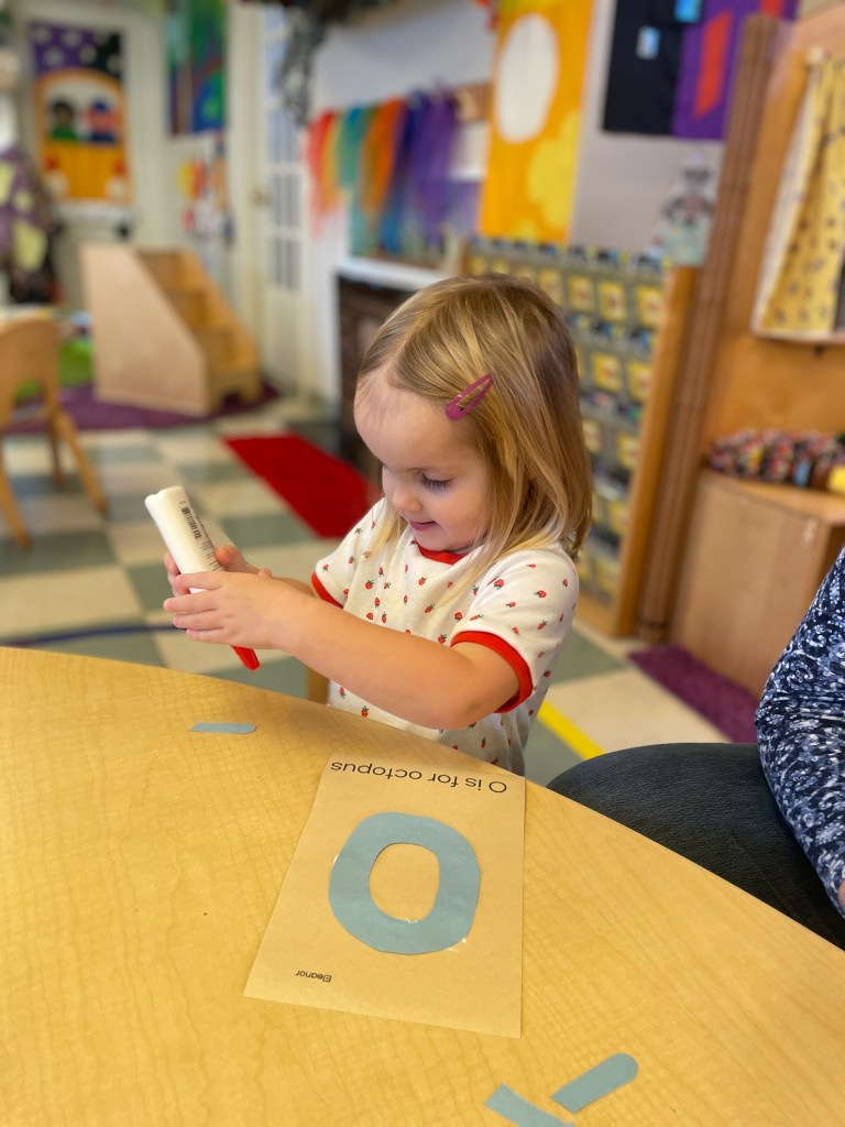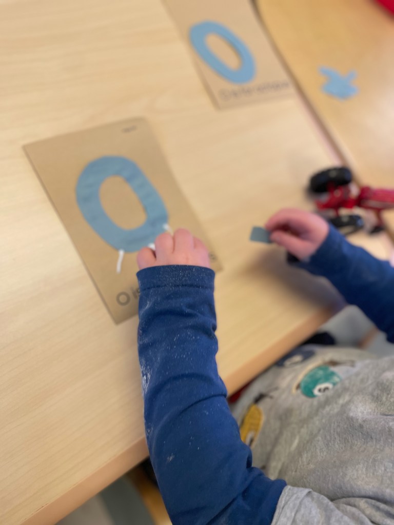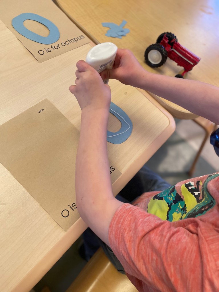 Some friends colored on individual letter cards and some friends drew letters on the sentence strip from Monday’s Kansas Day work.