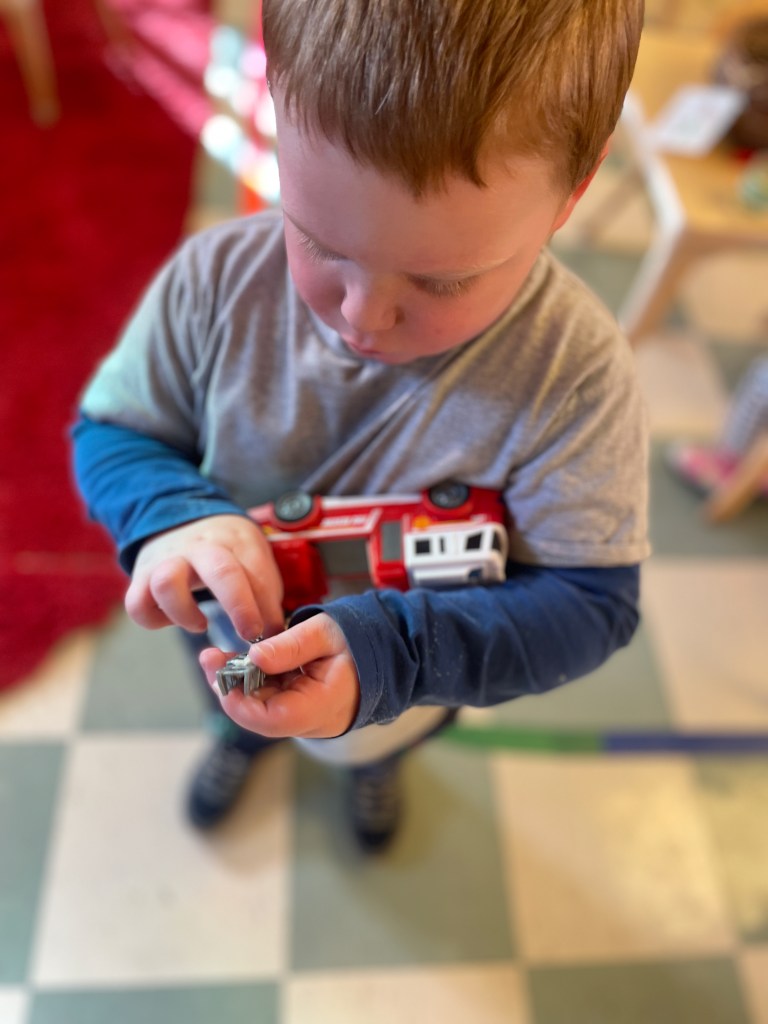 We had everyone at preschool today for a lot of play, a lot of laughs and learning new things (even the teachers!). It is the last day of January, so we enjoyed the black and white things at the Tub Table, on the Tiny Things table, at the play dough and the cutting tub. Tomorrow all of that turns pink!