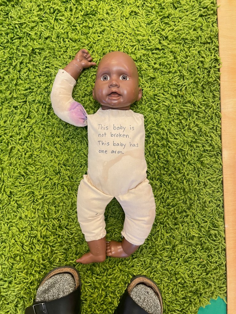 We looked again at our book, What Happened to You, and our doll who has one arm.