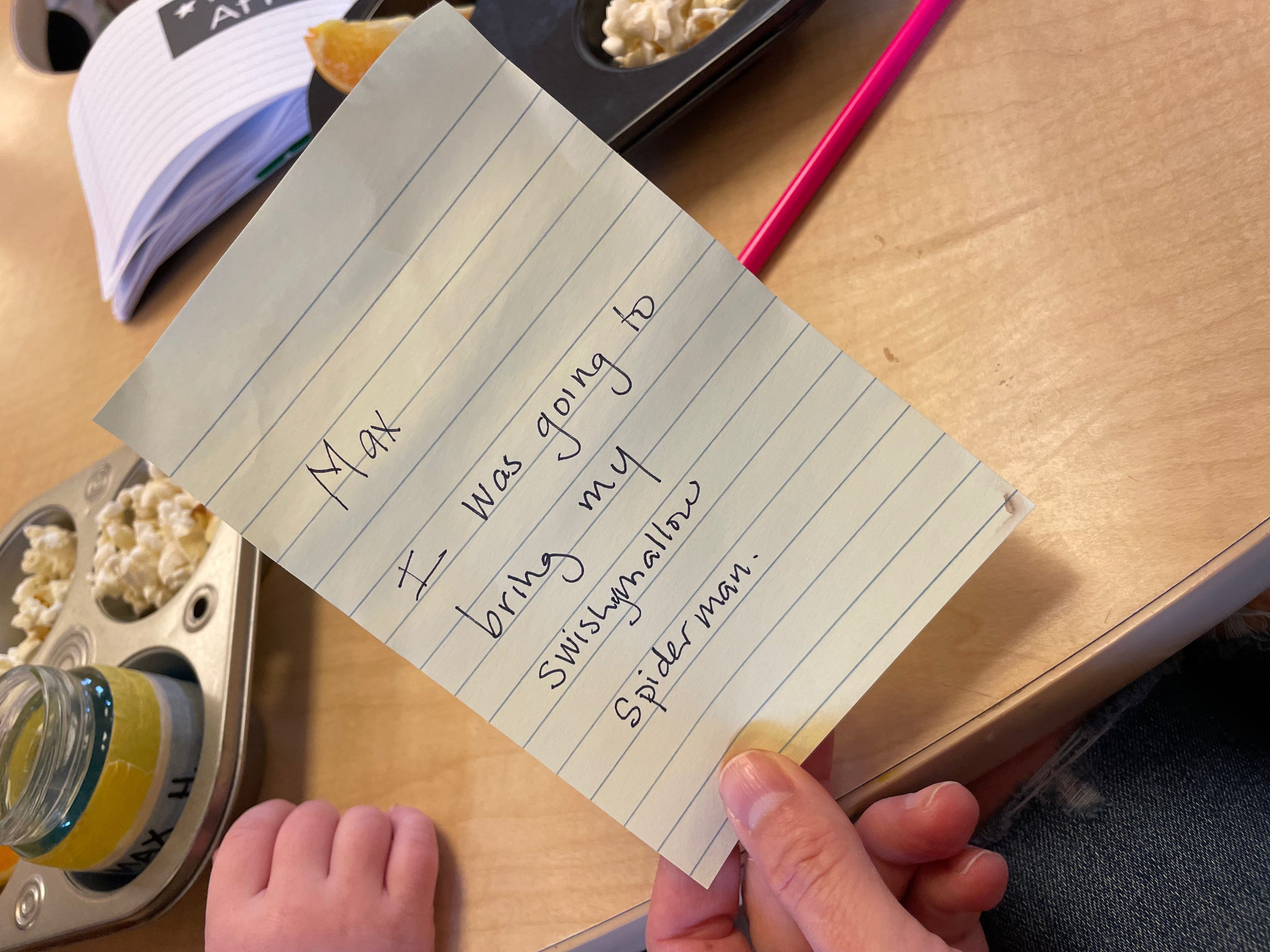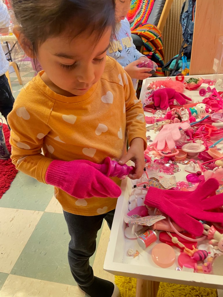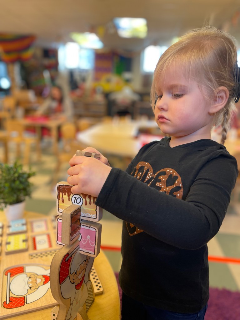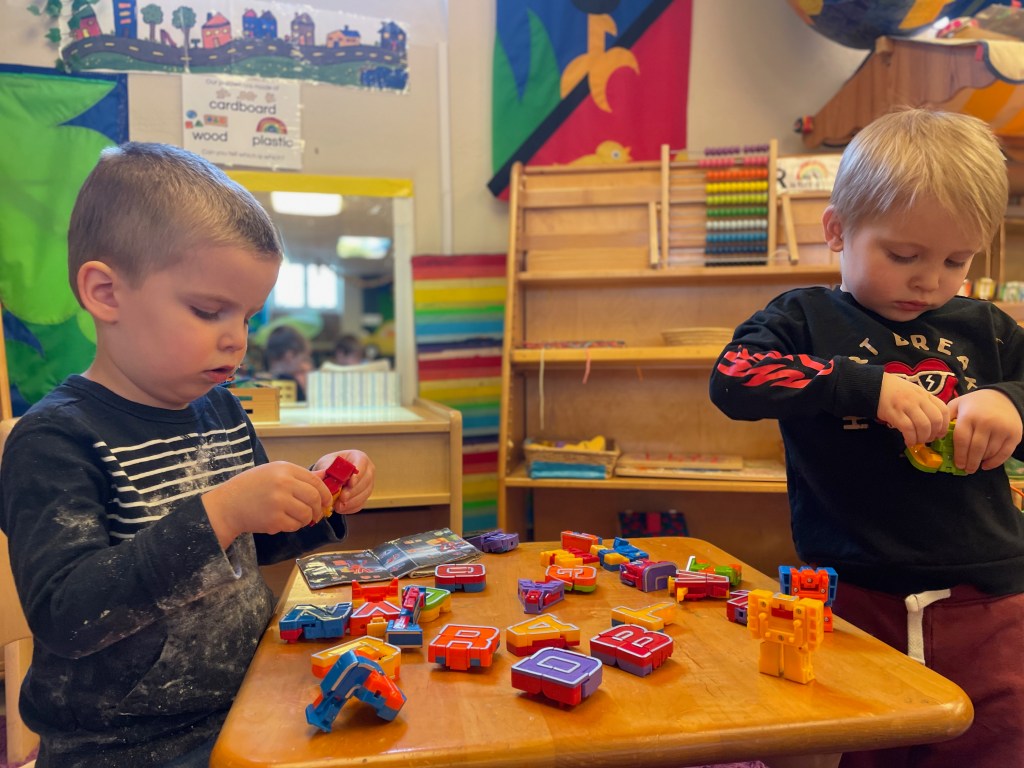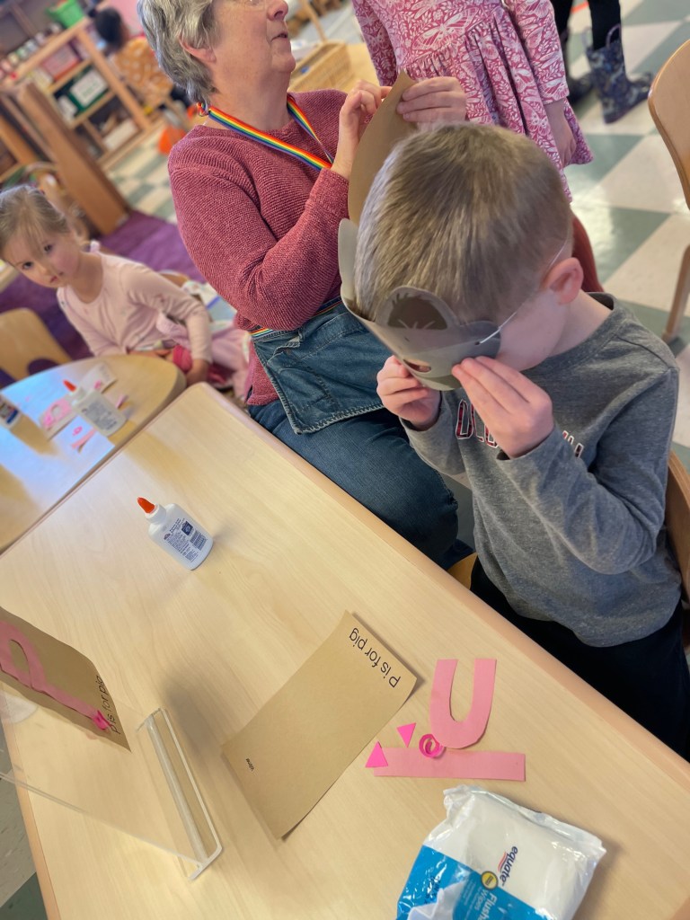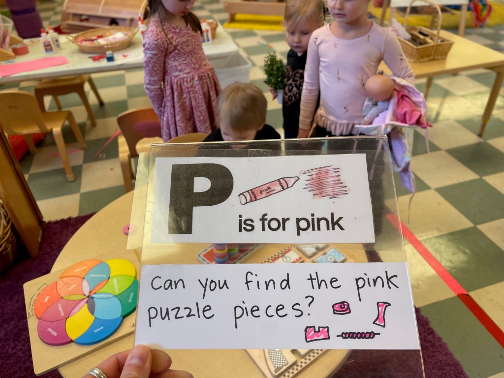 Along with looking for all the pink puzzle pieces, I also found children working on new-to-them puzzles. One friend completed the wobbly cake puzzle for the first time and another turned a letter into a robot for the first time!