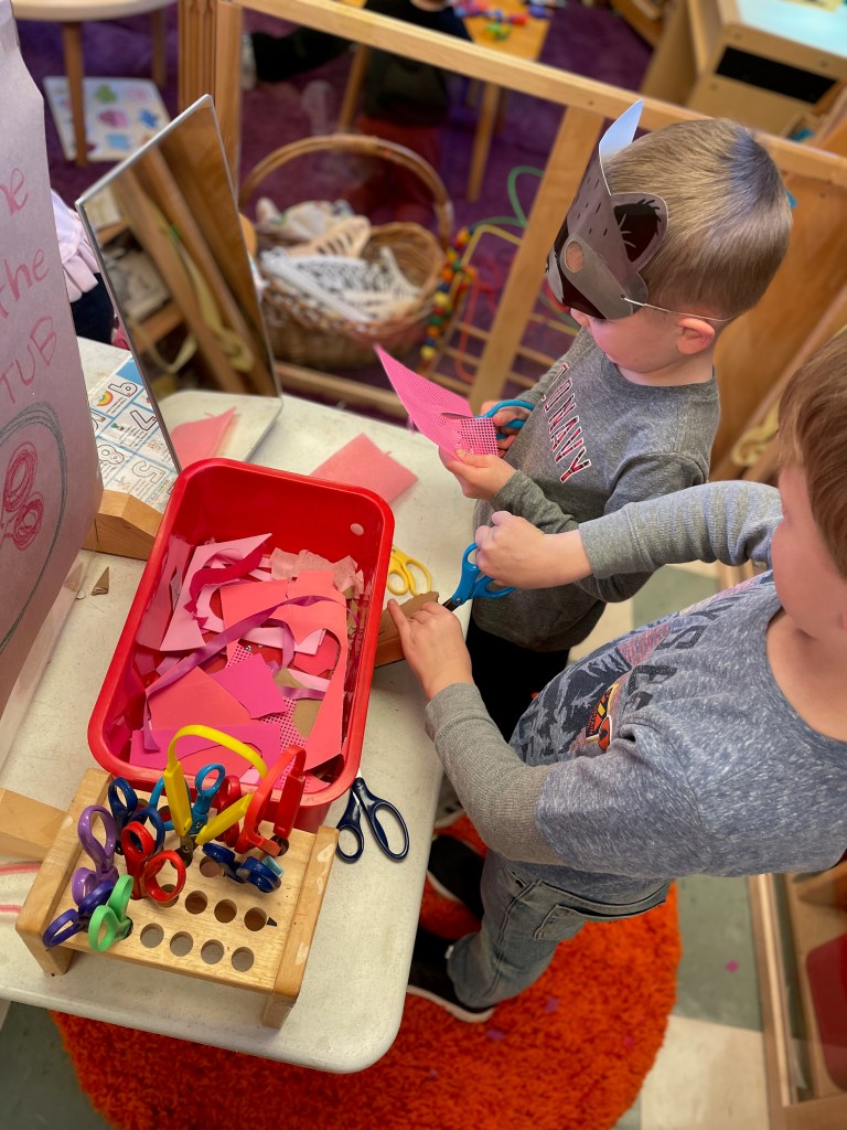 We could be found at the pink Tiny Things, the pink Tub Table things, the pink pigs in the pink kinetic sand, writing and drawing with pink in our journals, the pink Cutting Tub things…these friends cut through plastic, cardboard and wire!