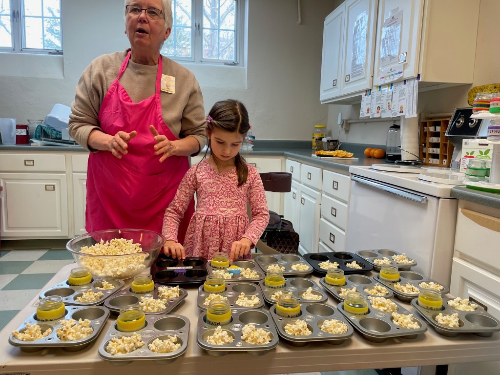 We had a cozy snack of popcorn and orange slices. Thanks to our snack helpers for getting everything ready!