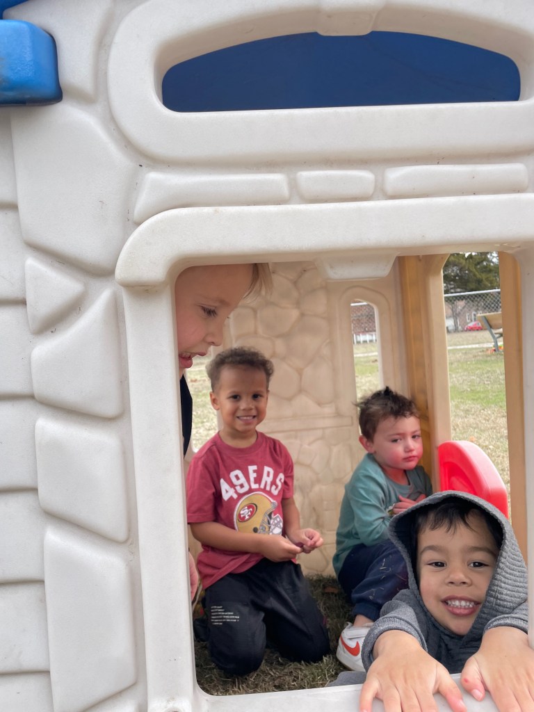 There was an elaborate make believe game of “daddy” happening outside today: 4 friends were daddies who would leave the house and go to work. Then they’d run home. Over and over. Then another friend who had a raccoon mask would chase them and they’d run from the raccoon on the way to or from work.