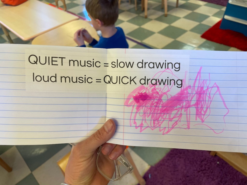 When Ms Kristin sang louder, the markers went more quickly. When she sang quietly, the markers went more slowly. We were like Queen Quartence because she runs quickly and knows how to be quiet.