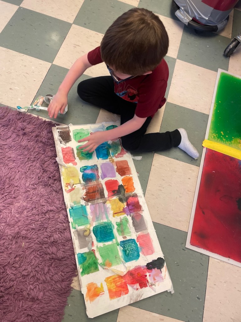 Rosie! We started adding more tape, paint and markers to her. Welcome back, Rosie!