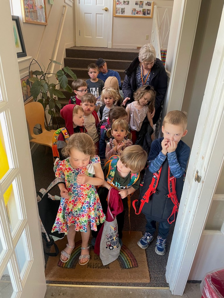 Children took turns coming to tell Ms Kristin about times when they felt scared. We had a range of being hit by a raquetball to characters on movies to storms to spiders and dreams. We did a little shiver shake after each one to feel those fears and let them go a little bit. While waiting to go outside, we paused and did some S feeling word expressions: Silly, Surprised, Scared, Sad