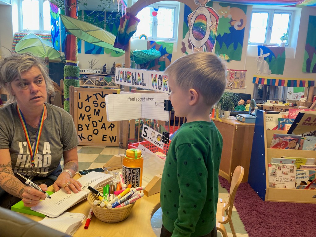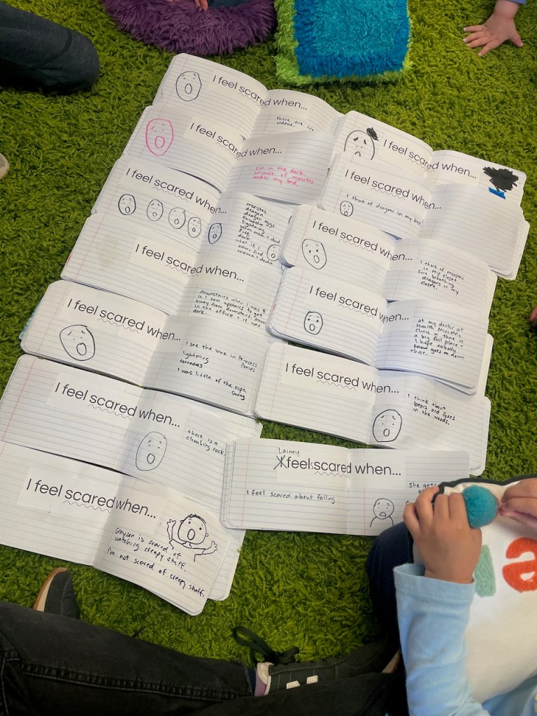 Children took turns coming to tell Ms Kristin about times when they or their siblings felt scared. Then we read them at Circle Time and we did a little (or big) shiver shake after each one to feel those fears and let them go a little bit.