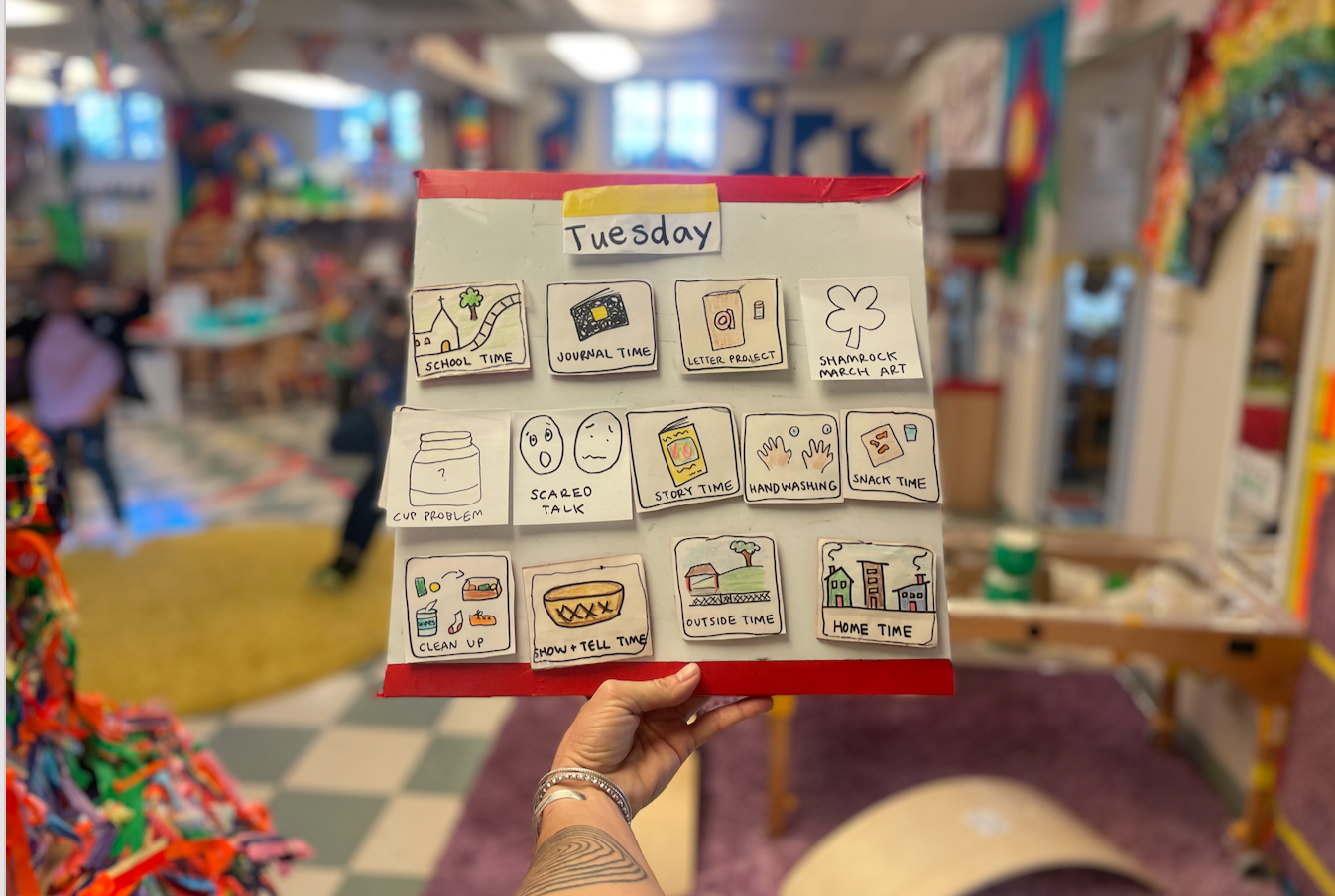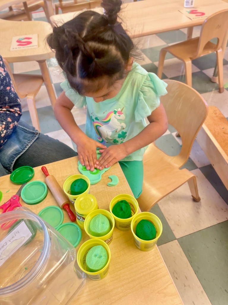 Getting our snack trays was a little different because normally children look for the cup with their name on it to know which tray is theirs. Today they got to take any tray and any cup!