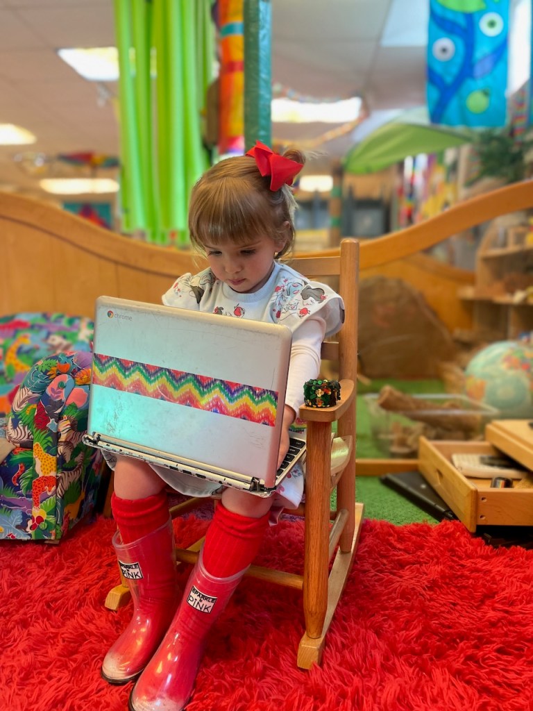 Because it was so messy it made her laugh. We played hard in this corner today!