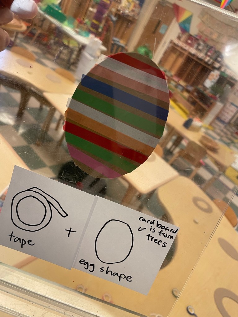 We worked hard with the 47 rolls of tape and cardboard egg shapes.