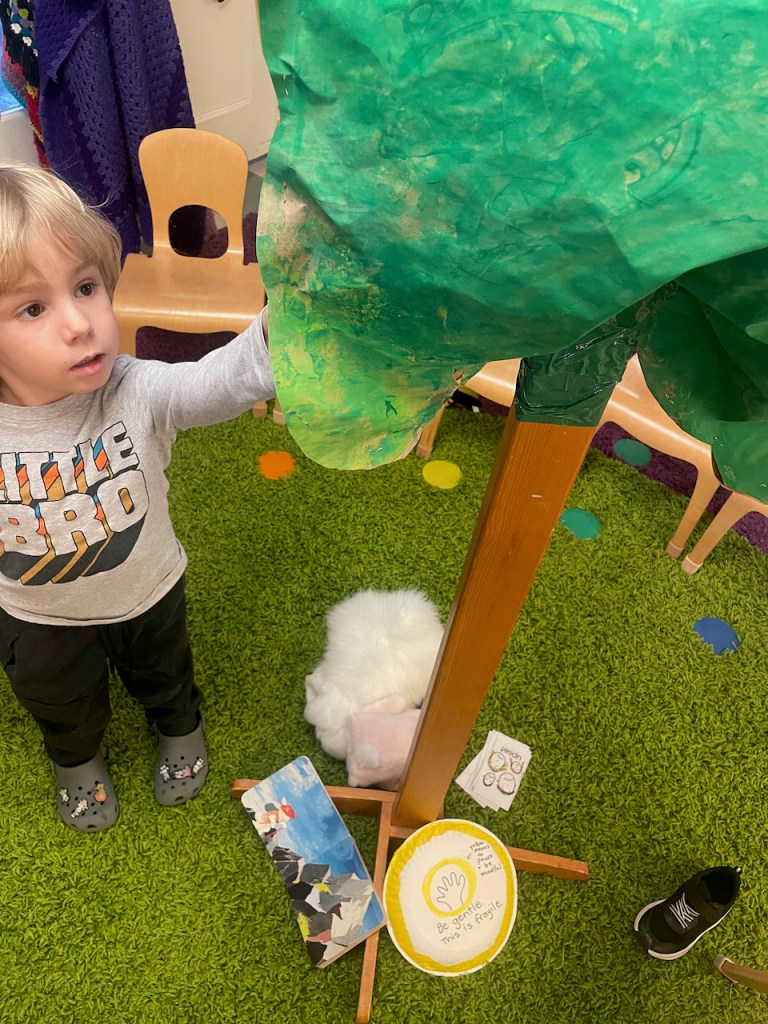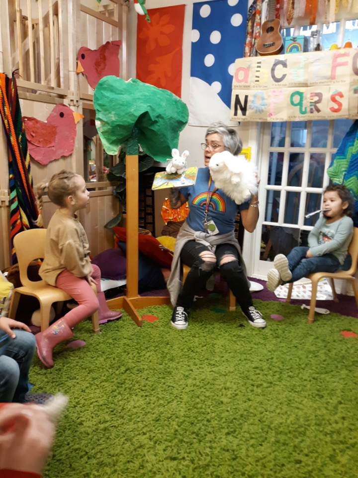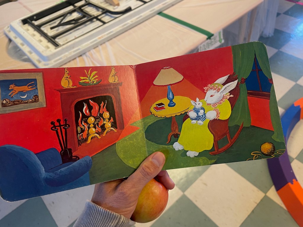 Ms Kristin did a puppet show of the whole book, The Runaway Bunny. We noticed that one of the pages looked just like the room in Goodnight Moon!