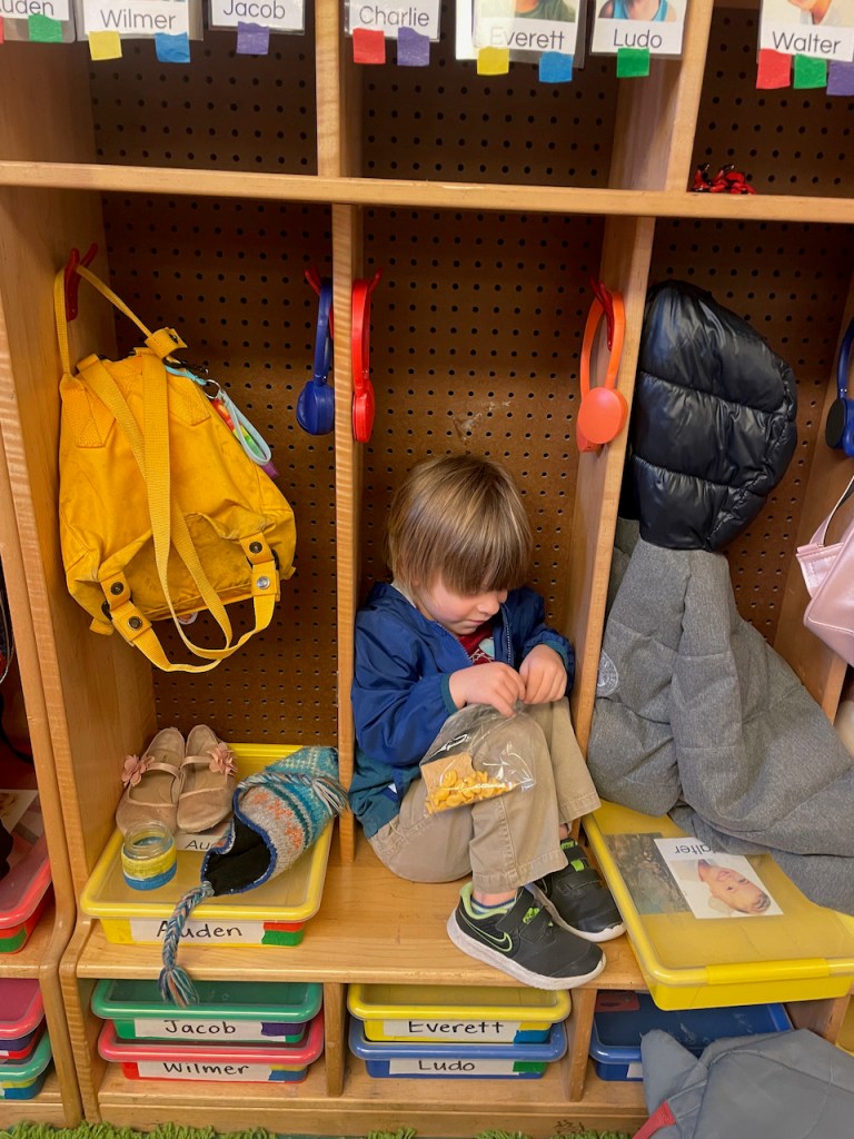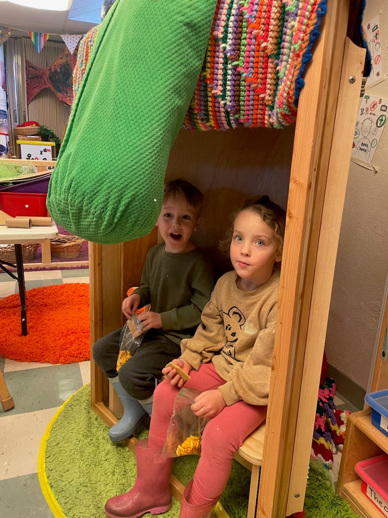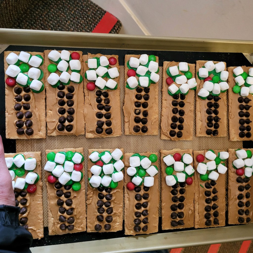 Thank you, Walter and Annie for our delicious “tree house” snack. After Show and Tell, we ate them outside by real trees and were surprised that the cold front already moved in!
