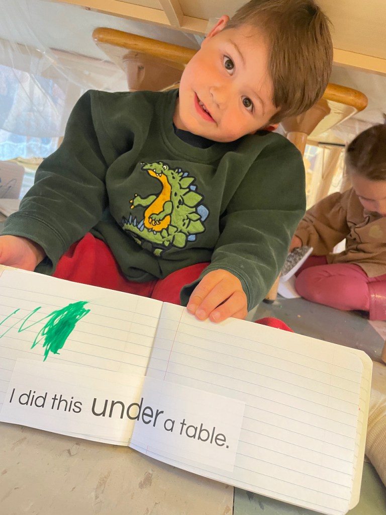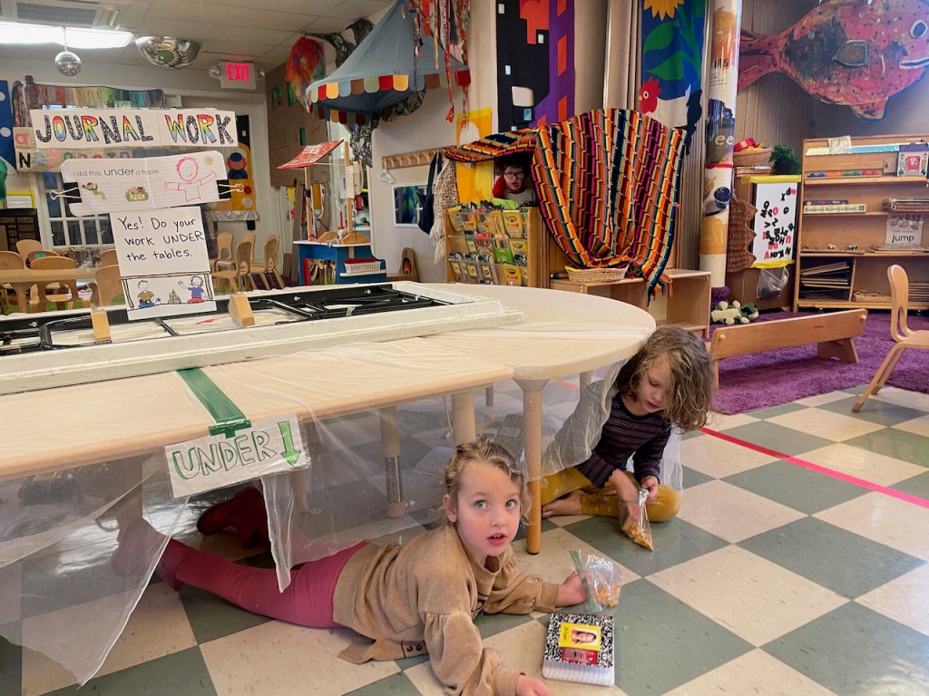This means that we went under the table to do our Journal Work!