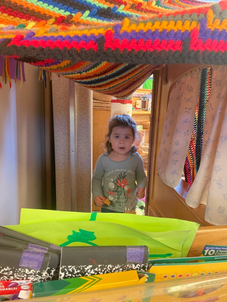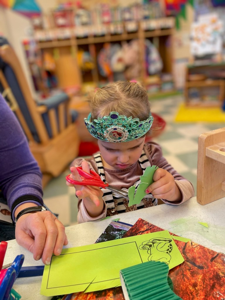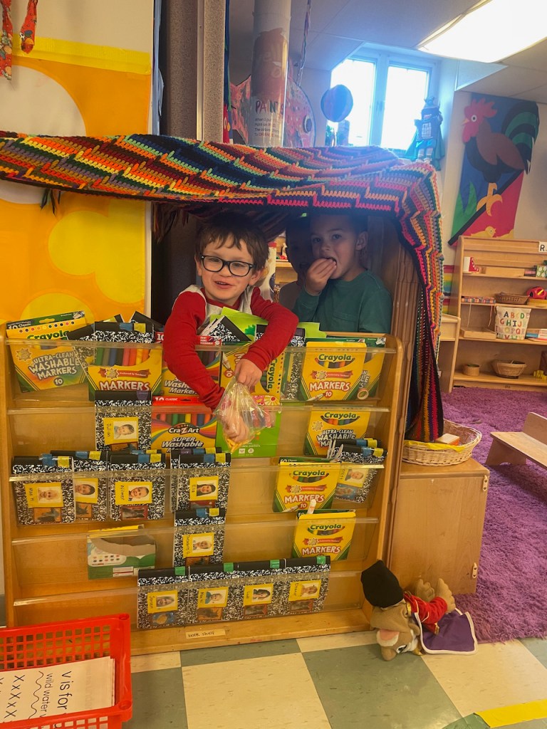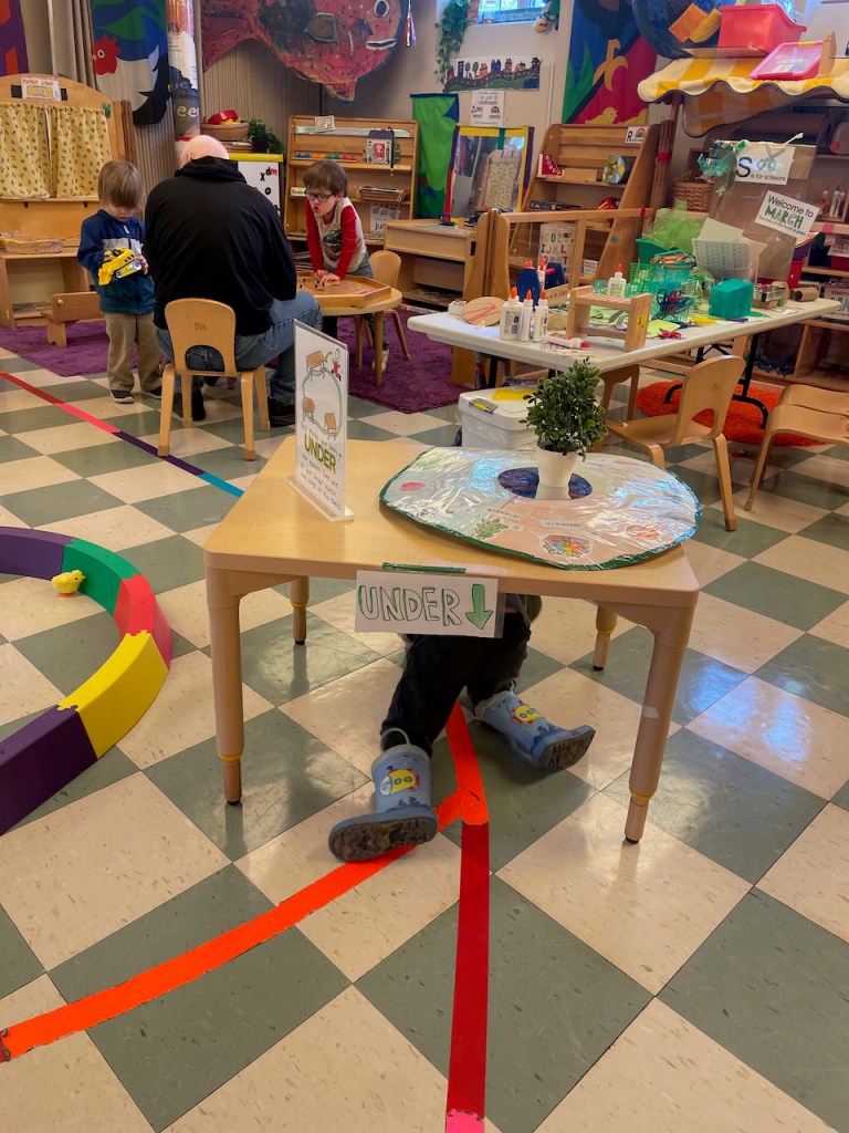 Once upon a time there was a classroom with a big round table. It was big enough for all the preschoolers and all the teacher friends. Then one day there weren’t any chairs at the table at all! Where would the children do their journal work? Where would they eat snack? Whatever would they do?