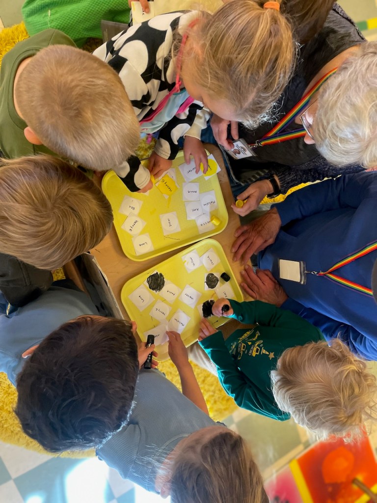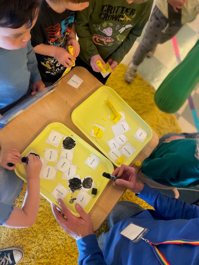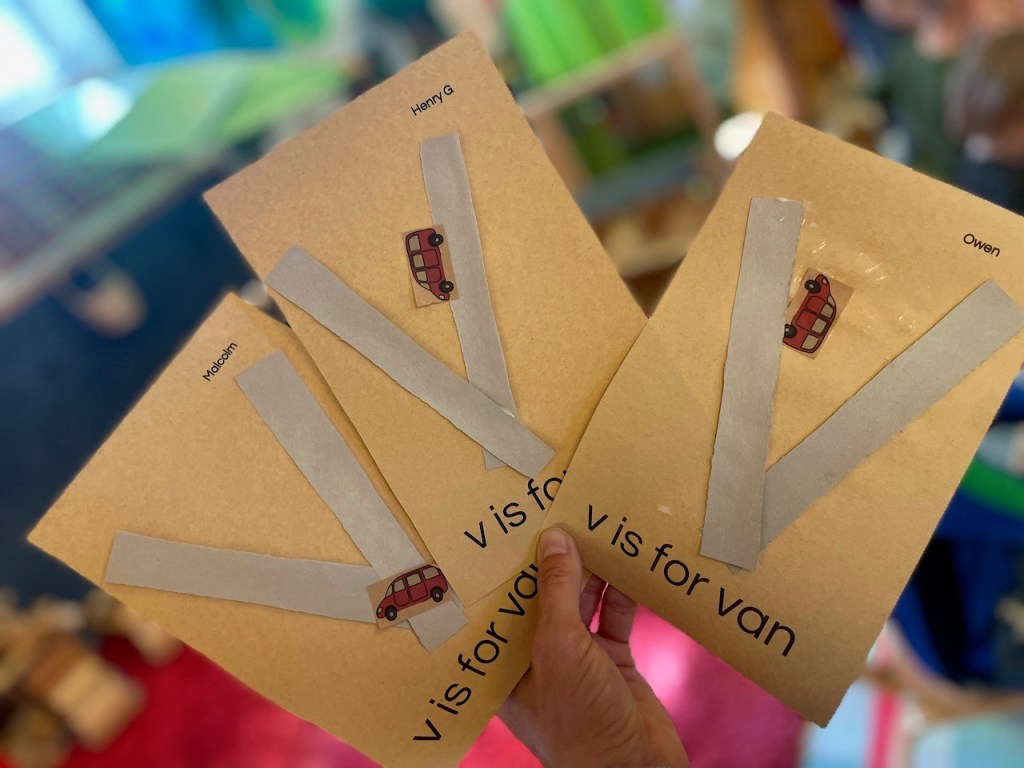 Ms Brenda led us in a snack time school family conversation and we had a wide range of answers from home to a make believe Candy Land. Then we looked at the completed alphabet projects and pretended that the vans were going to the places we thought of! Great recall work, friends!