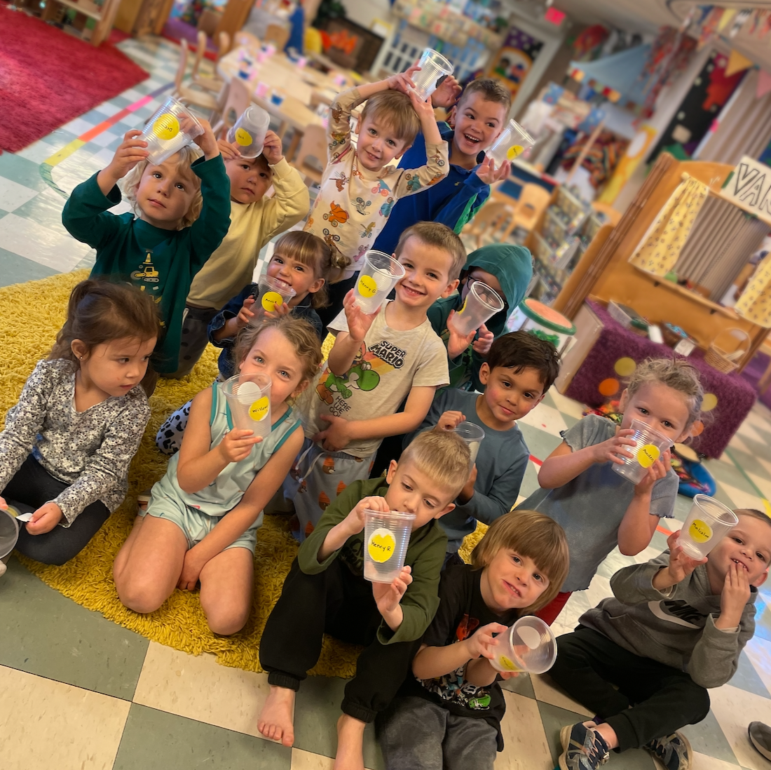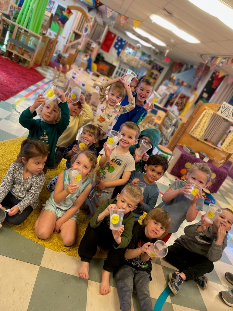 We had to paint two circle stickers: one black and one yellow. Then after Circle Time we put them on cups and watched the sun sticker disappear and reappear from behind the moon sticker. Happy Solar Eclipse!