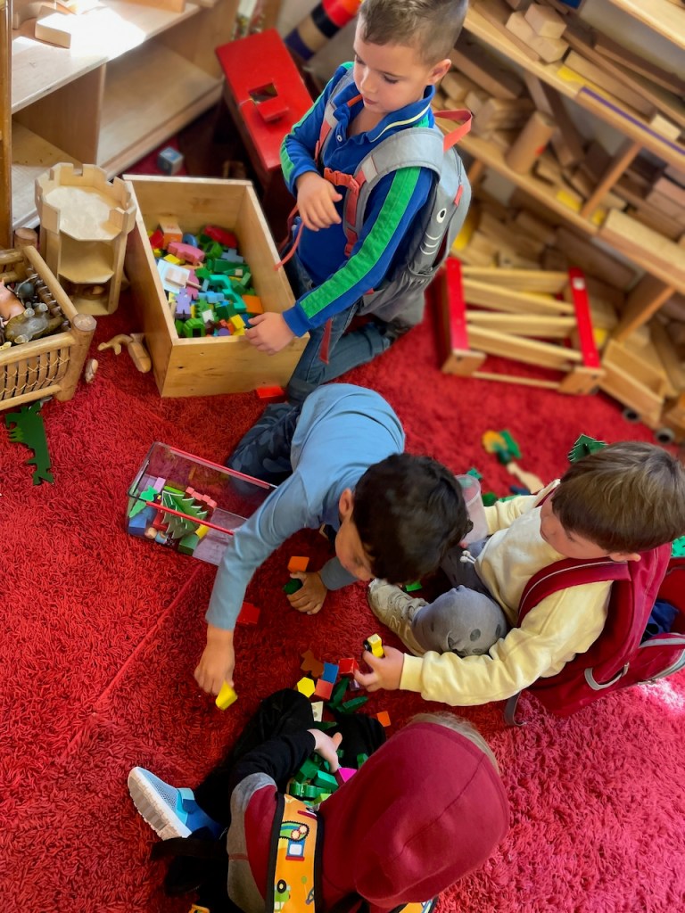 Our classroom van is made of our chairs, our journal shelf, puppet stage and library. It has the option of 13 steering wheels, seat belts, a hundred keys and maps. We’ll be taking a lot of vacations this week!