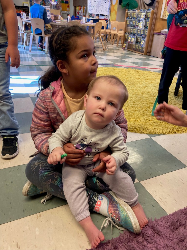 And lucky us, we had two real babies play for a bit today (and one of them is the daughter of a former preschooler of mine!!).