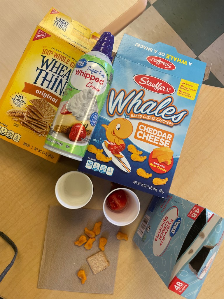Wheat thins, Whale crackers, Watermelon and Whipped cream!