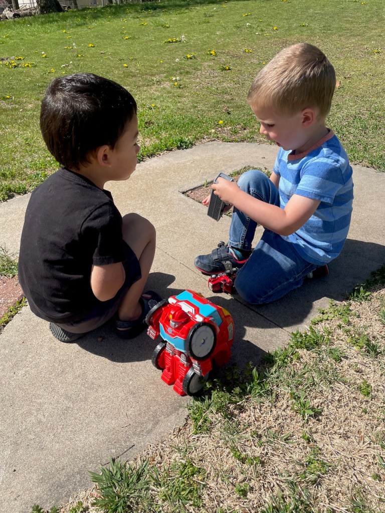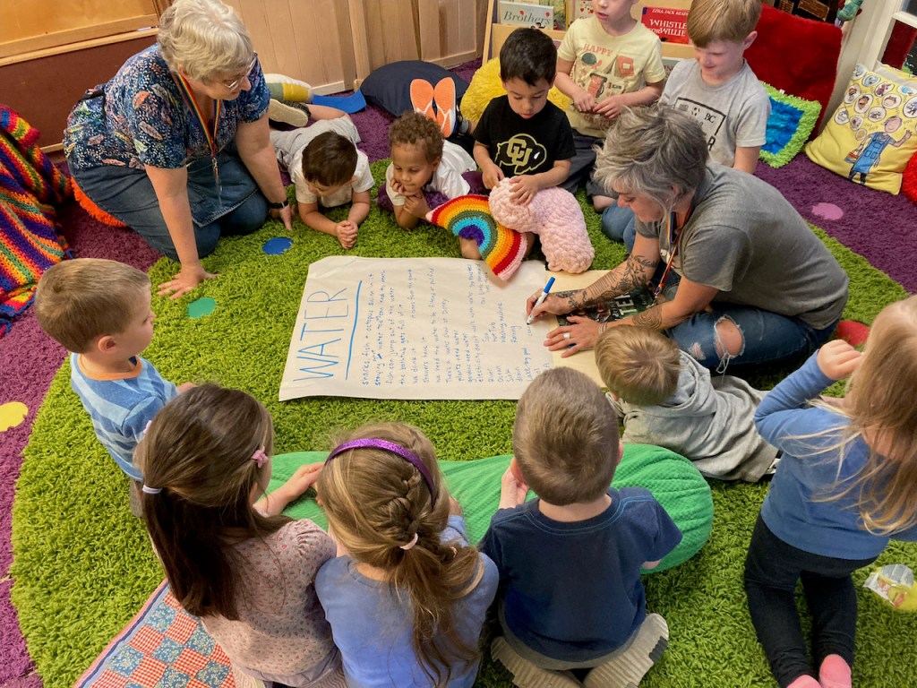 Once upon a time there were 12 children and 2 teachers playing on the playground. At the very top of the hill on the other side of the fence there were two workers from the city. They had a firefighter hose but they weren’t fire fighters. They were using the fire hydrant but there was no fire. What in the world was happening?