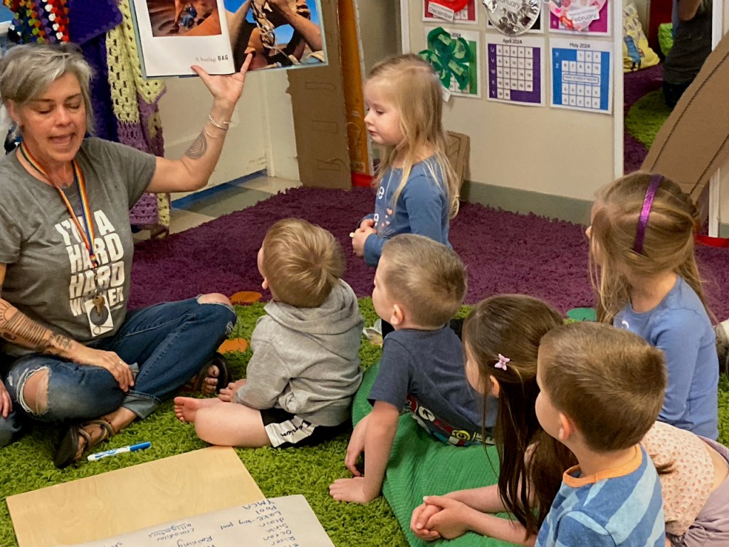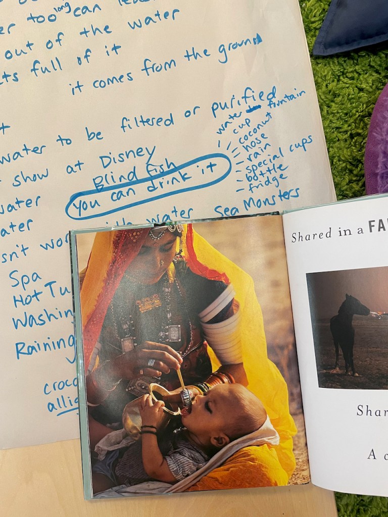 Our book shows people working with water all over the world. Ms Kristin’s favorite page is the baby getting sips from a spoon.