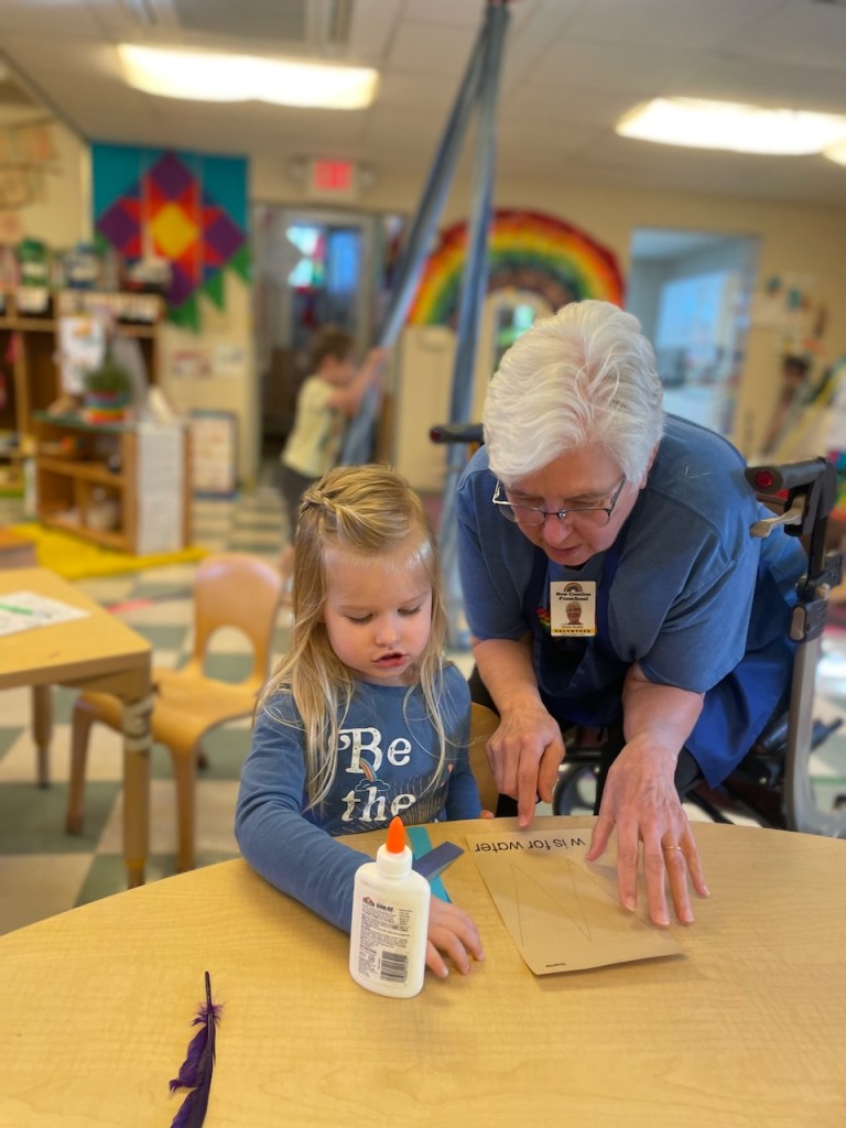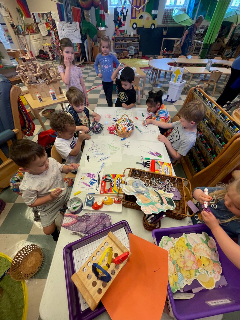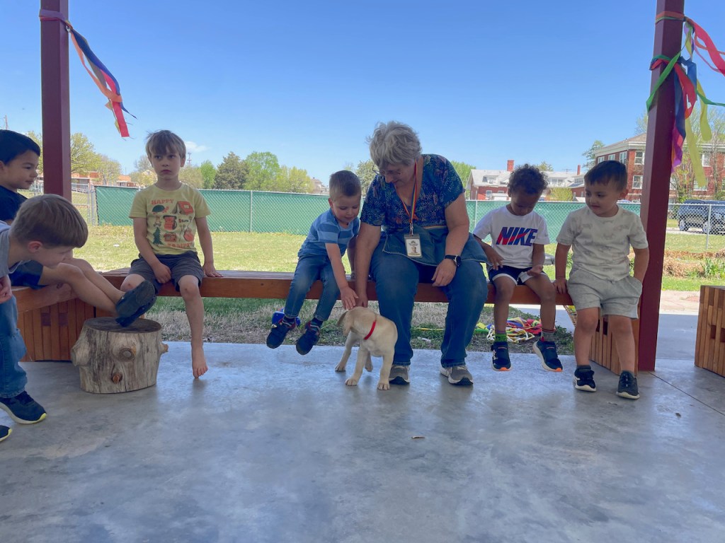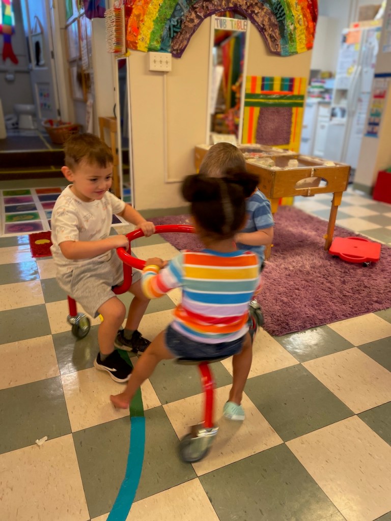 Thank you to our birthday friend and Golden Letter friend for setting the table for a wonderful snack. Then they led us outside for Show and Tell and play.