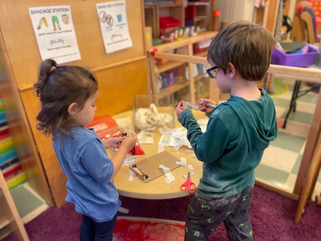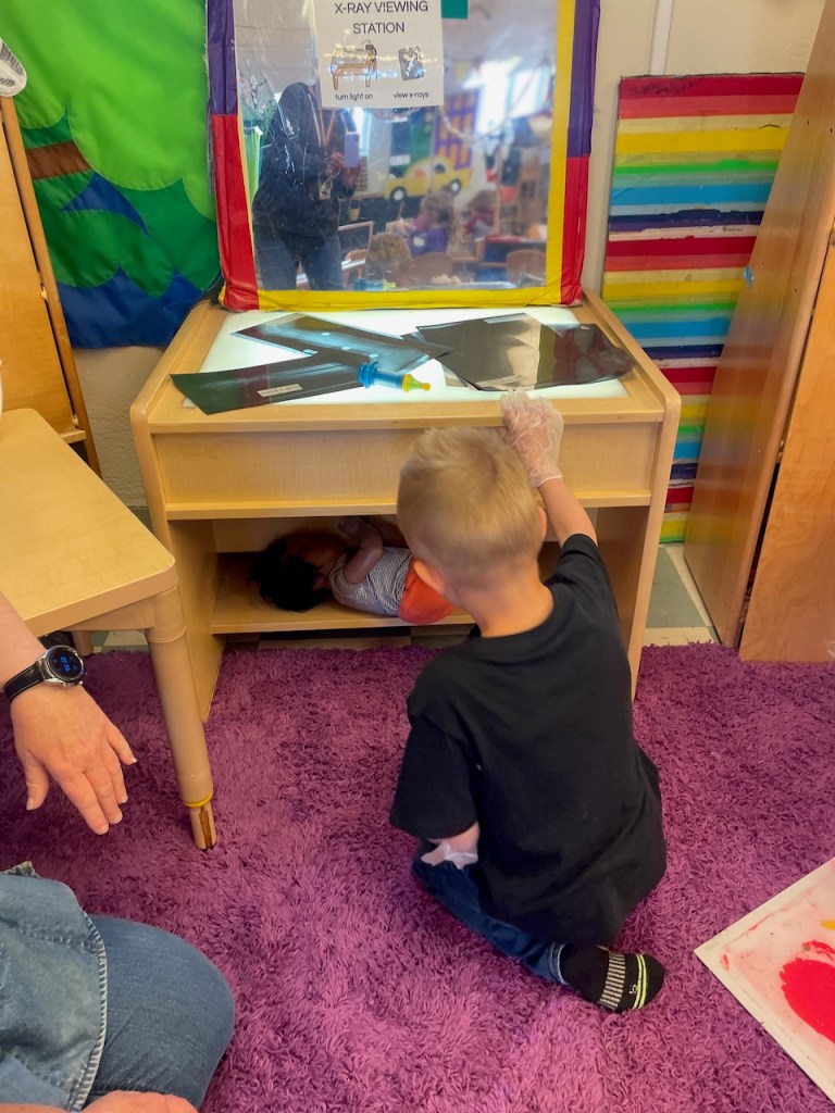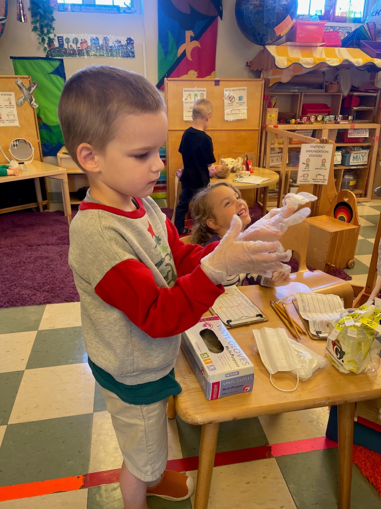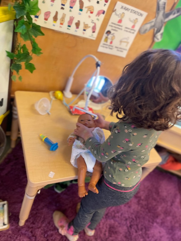 When it is X Week, we turn part of our classroom into a Healthcare Center. Animals and babies and even Ms Brenda got wonderful care today.