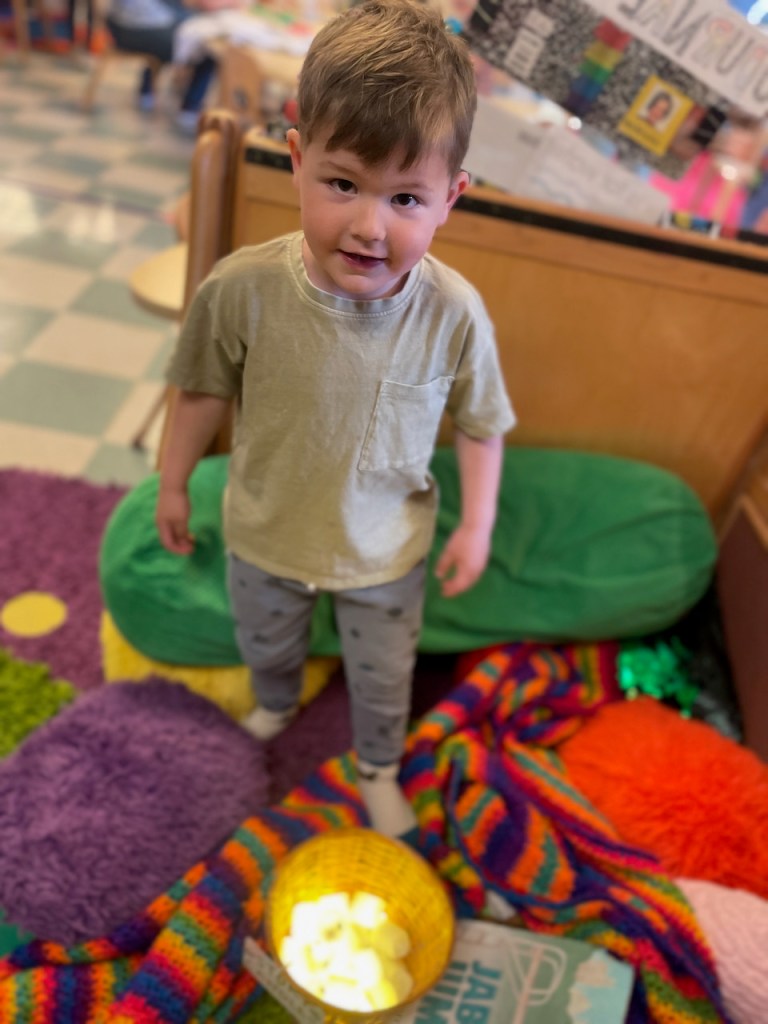 We had a very cozy snack time playing our xylophones and listening to a story Ms Kristin read.
