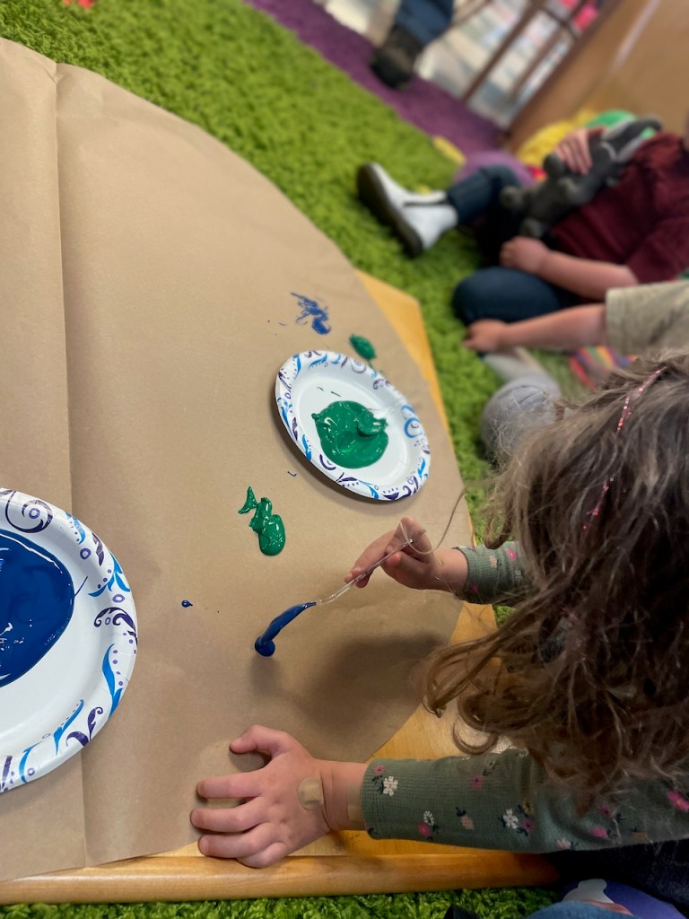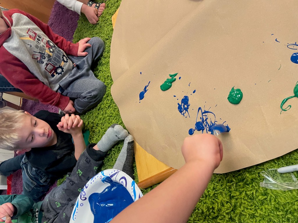 The earth! In honor of Earth Day, we did a symmetry painting project by adding paint to half of a paper and then folding it over.