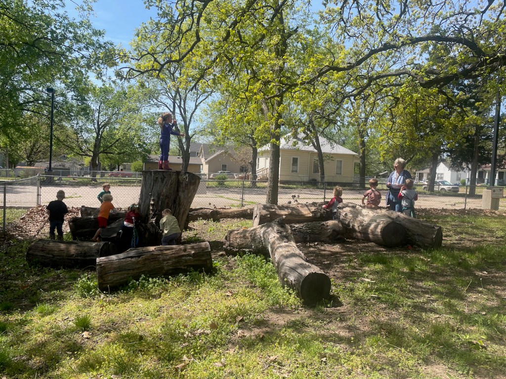 In, on, under and around the logs! It felt a lot like an Easter Egg hunt.