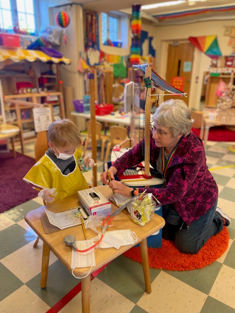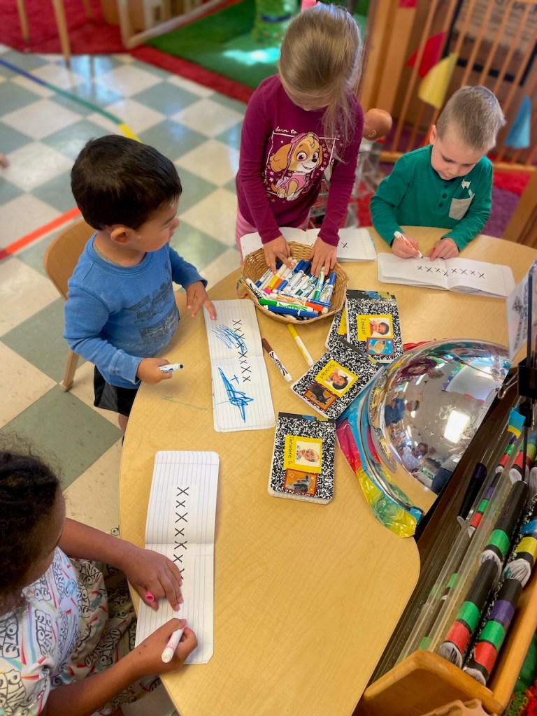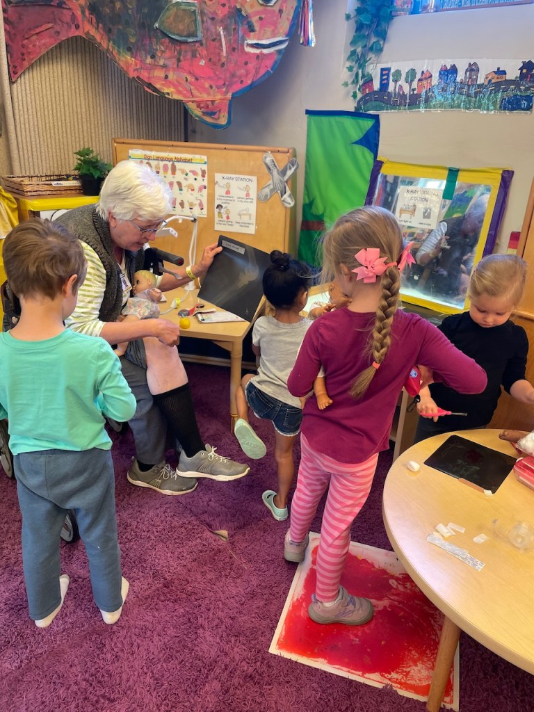 Read on to learn about the children stopping the wind, our healthcare center, going in Ms Kristin’s office, drawing Xs and making clouds and snow.