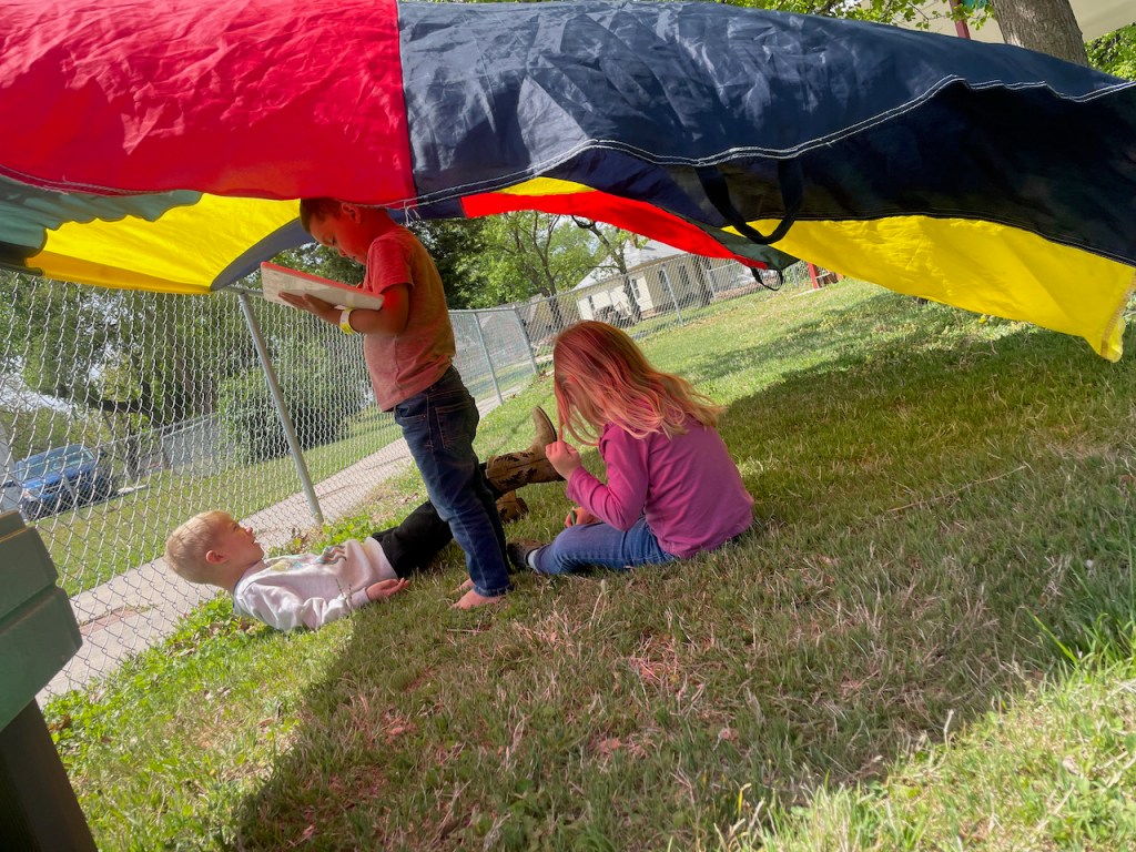 We also had butterfly wings, pretend food, walkie talkies (with no batteries), a parachute with the Kansas wind, bubbles and more digging on the dirt hill.